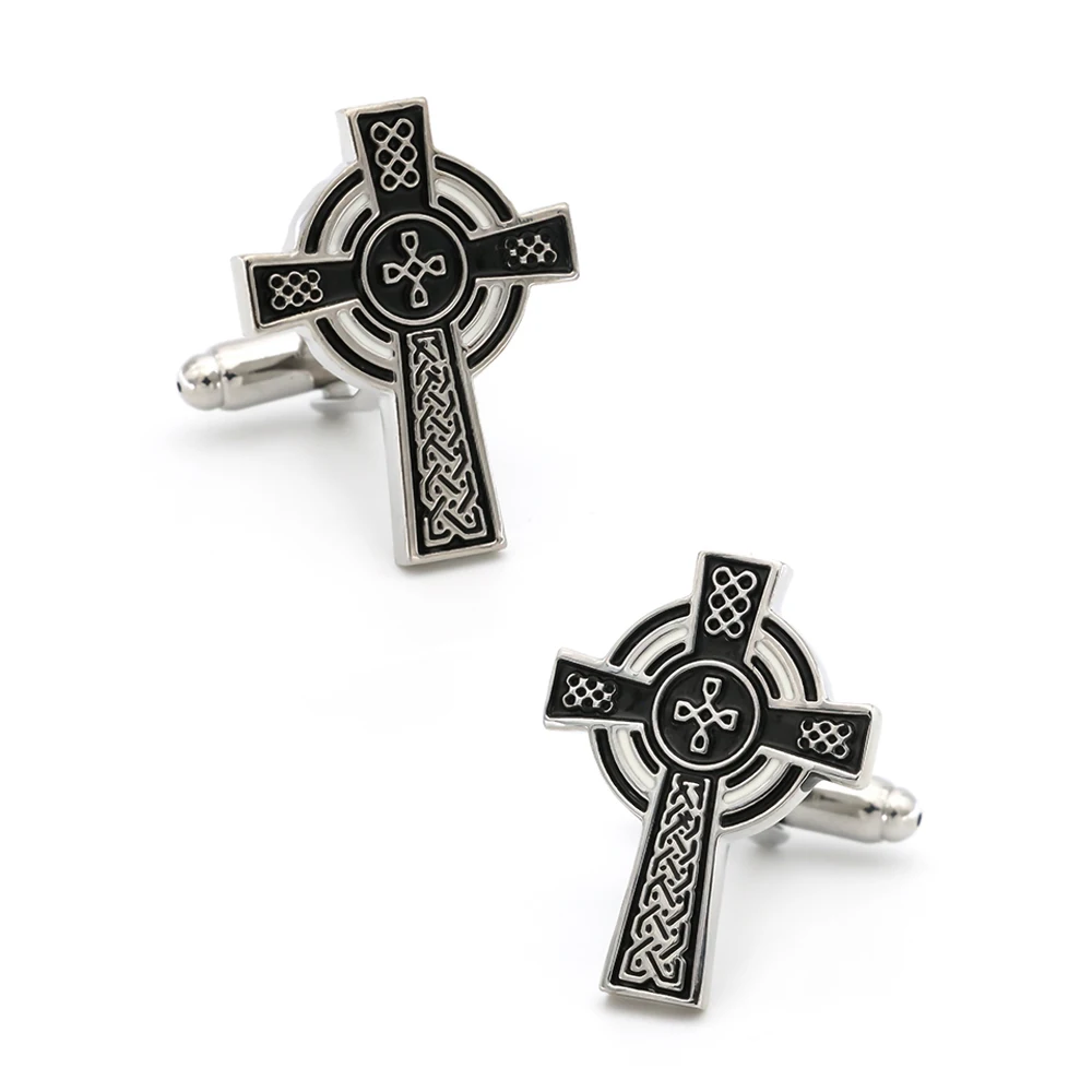 Запонки с крестом в винтажном стиле для мужчин, качественный медный материал, запонки черного цвета, опт и розница