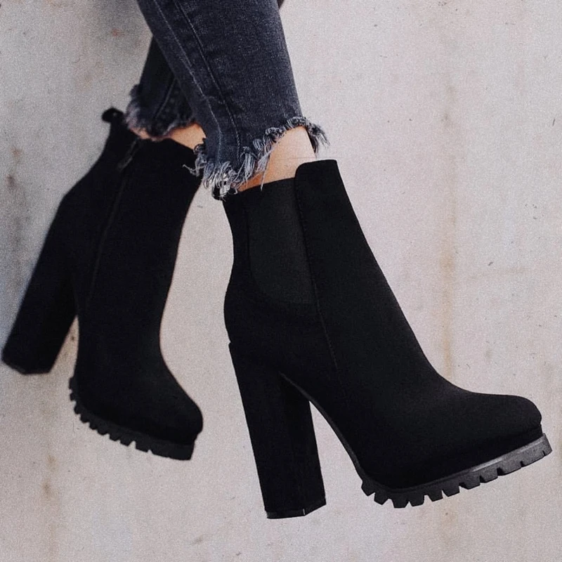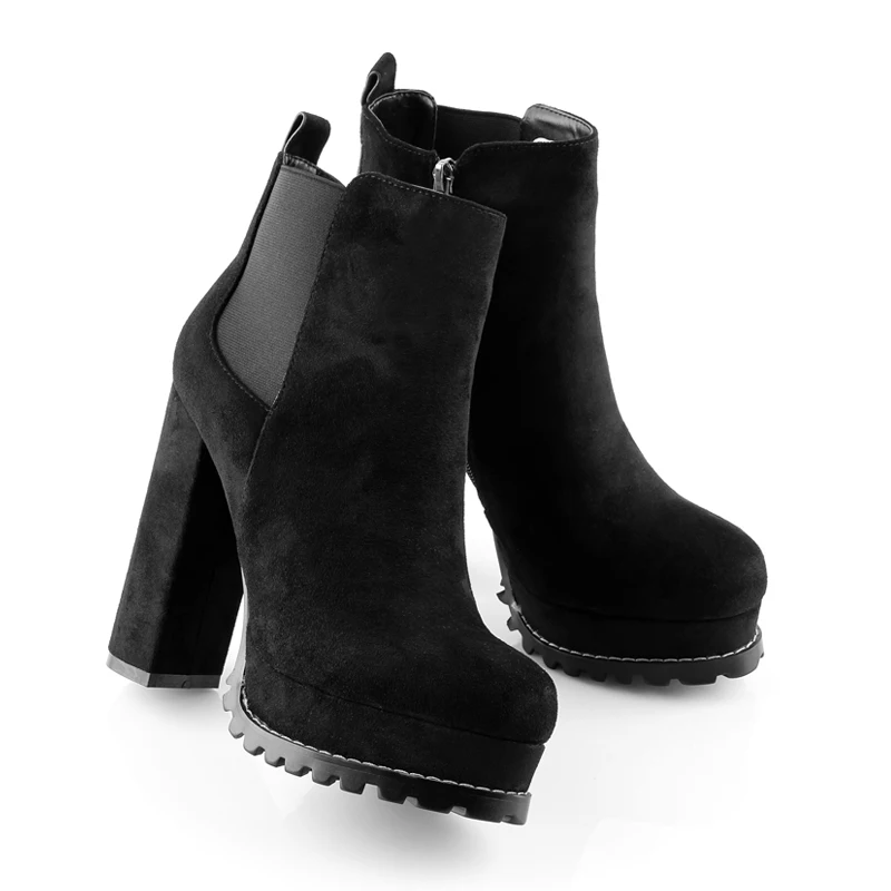 Ботильоны женские, на платформе и толстом каблуке, черные