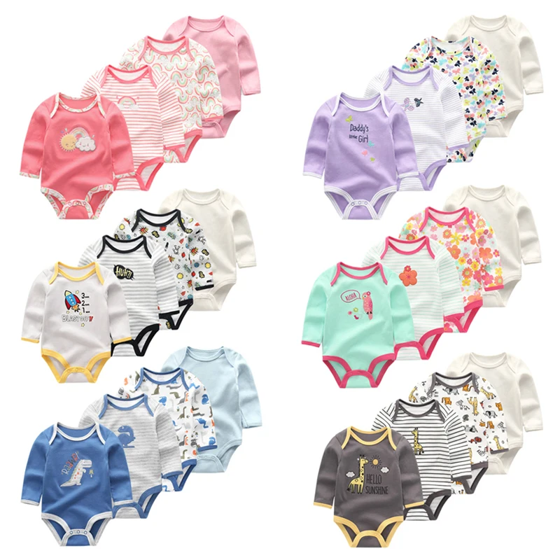 4 шт.лот боди для новорожденных 0-12 месяцев, детский комбинезон, детская одежда с длинным рукавом, комплект одежды для маленьких мальчиков и девочек 2019