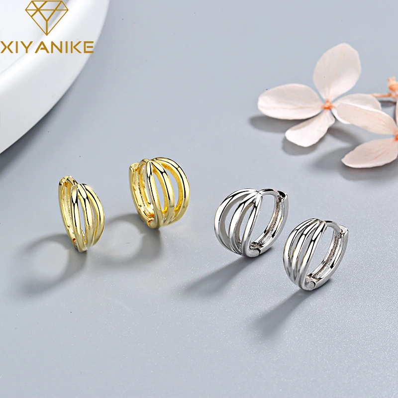 Серьги-гвоздики серебряного цвета XIYANIKE с геометрическим рисунком ручной работы для женщин Свадебные парные маленькие простые серьги-обручи ювелирные изделия