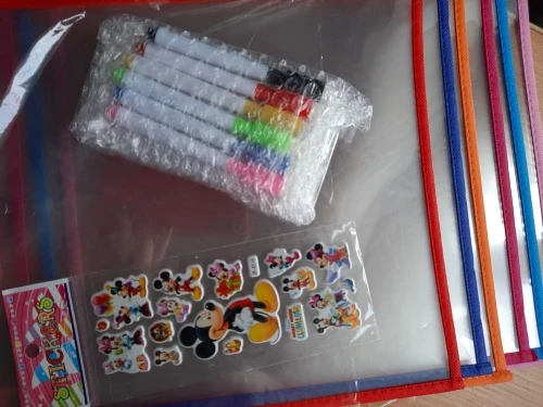 Оформила заказ 29.09.2020, продавец отправил 30.09.2020 пришло 18.11.2020. в город Якутск. В одном большом пакете с остальными заказами. Файлы упакованы в тонкий пакет, а фломастеры в пупырчатый обёртке. При вскрытии неприятного запаха нет, фломастеры без повреждений, имеется небольшой дефект на всех файлах в одном и том же месте (думаю из-за транспортировки) Очень яркие окантовки у файлов, качественно прошито, и насыщенные цвета : черный, тёмно-синий, фиолетовый, малиновый, розовый, жёлтый. Фломастеры очень хорошо пишут и стираются: фиолетовый, жёлтый, красный, зелёный и два синий. Зелёный и синий нужно сразу стирать, а то остаётся след - но не критичный. Купила за 626 руб С продавцом не общалась. Товаром довольна Продавцу спасибо за купон. Буду ещё заказывать Но лучше чтоб файлы упаковывали в пупырчатый пакет.
