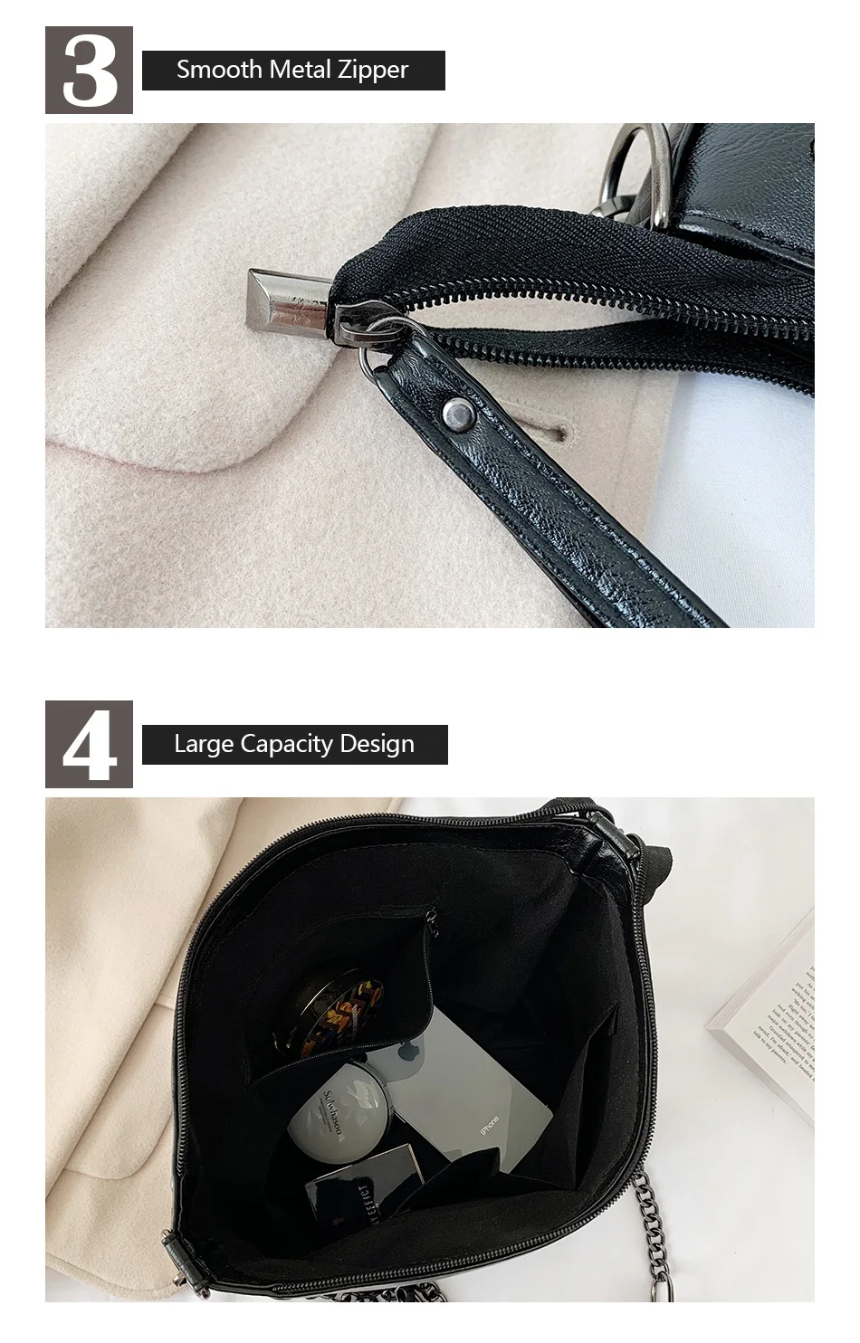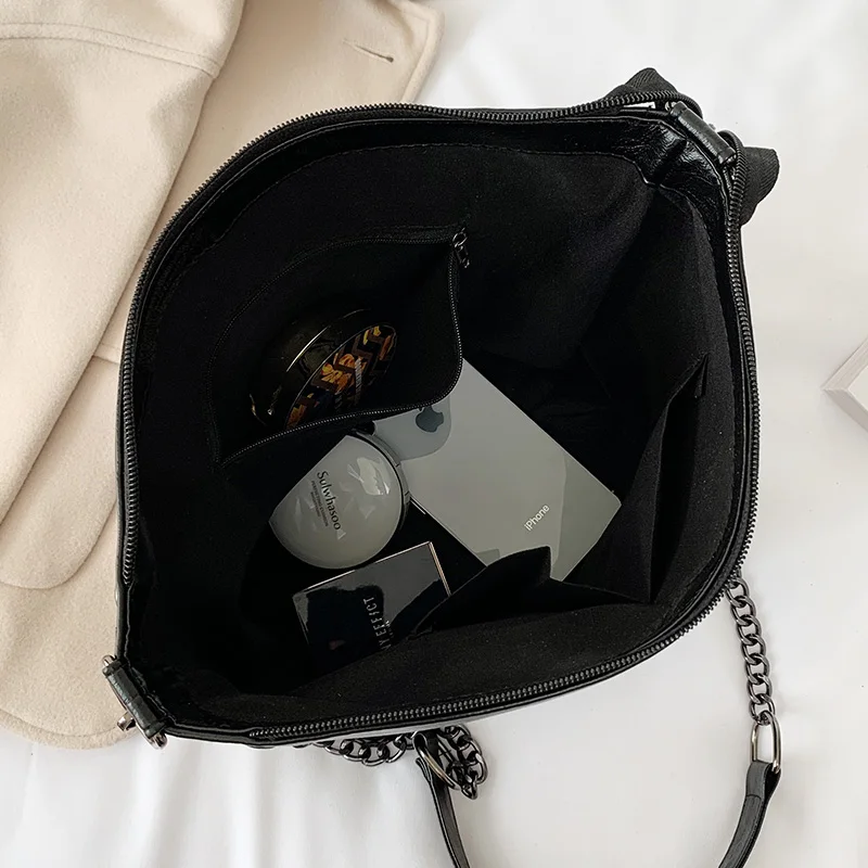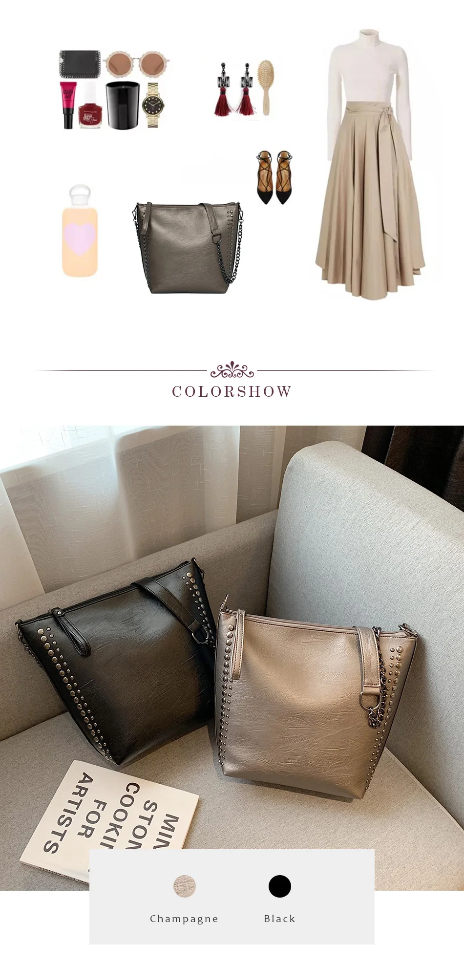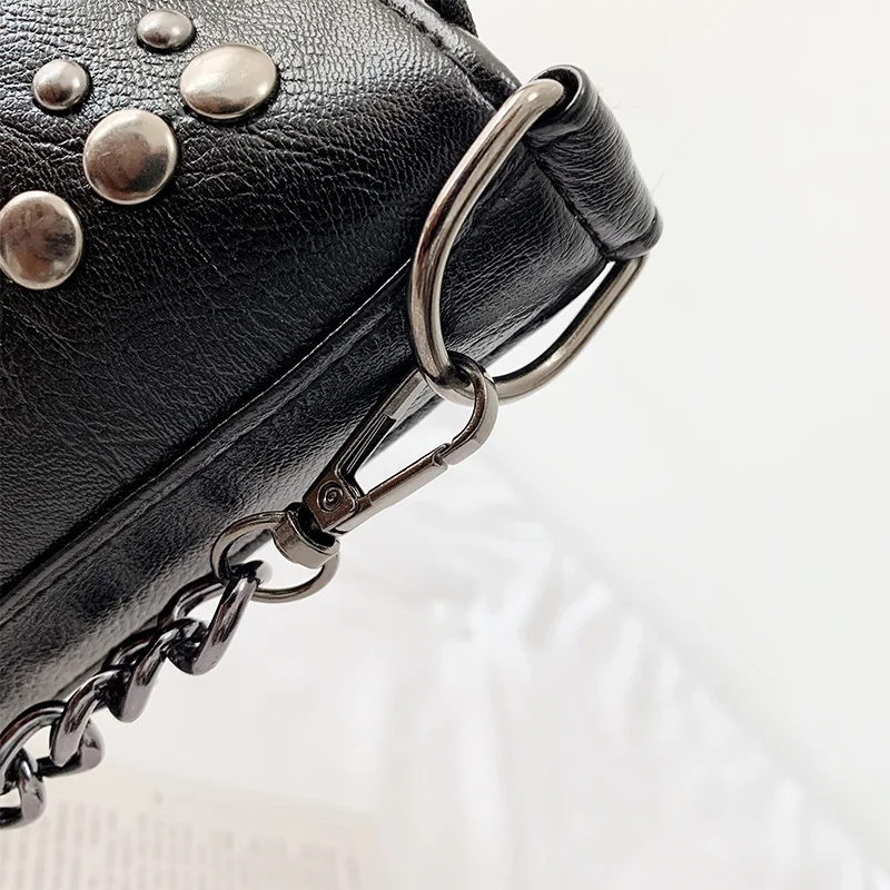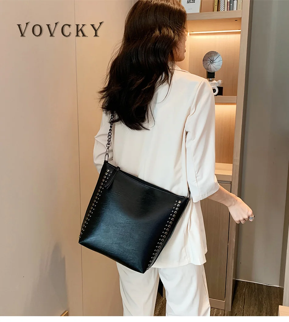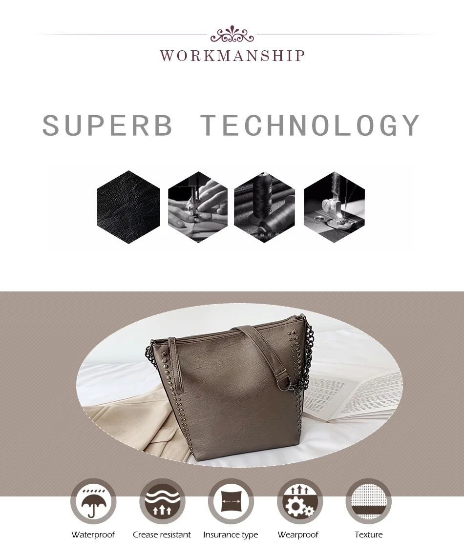 Новинка 2019, сумка-мешок с заклепками, Женская Повседневная сумка с цепочкой, женская большая сумка через плечо, женская кожаная сумка на молнии