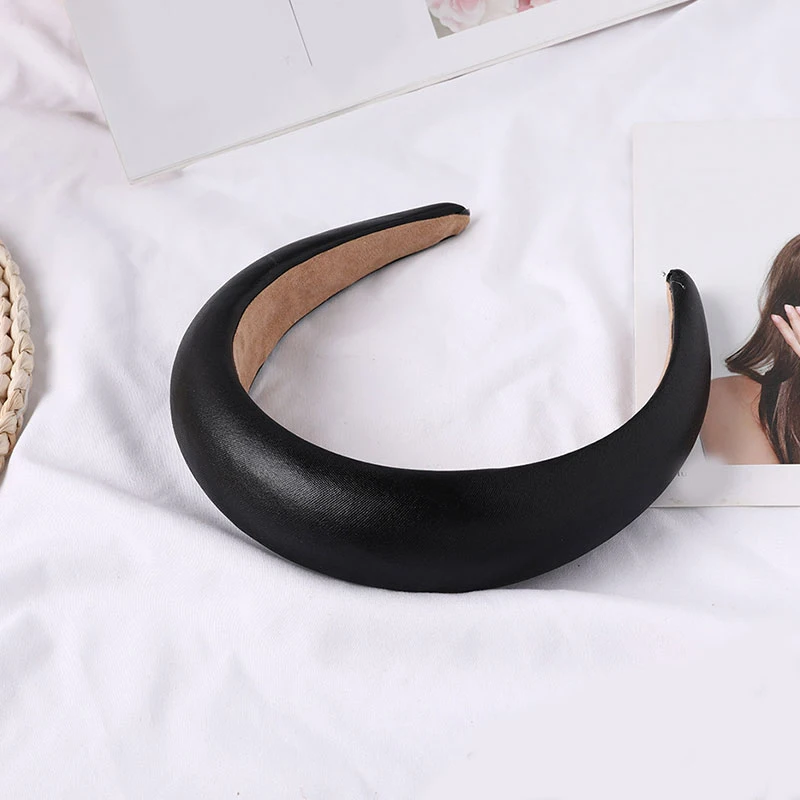 Ободок для волос Женский, кожаный повязка на голову с поролоном, элегантный серебристый, золотой, черный, аксессуар на голову