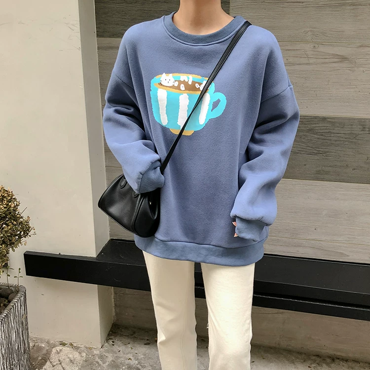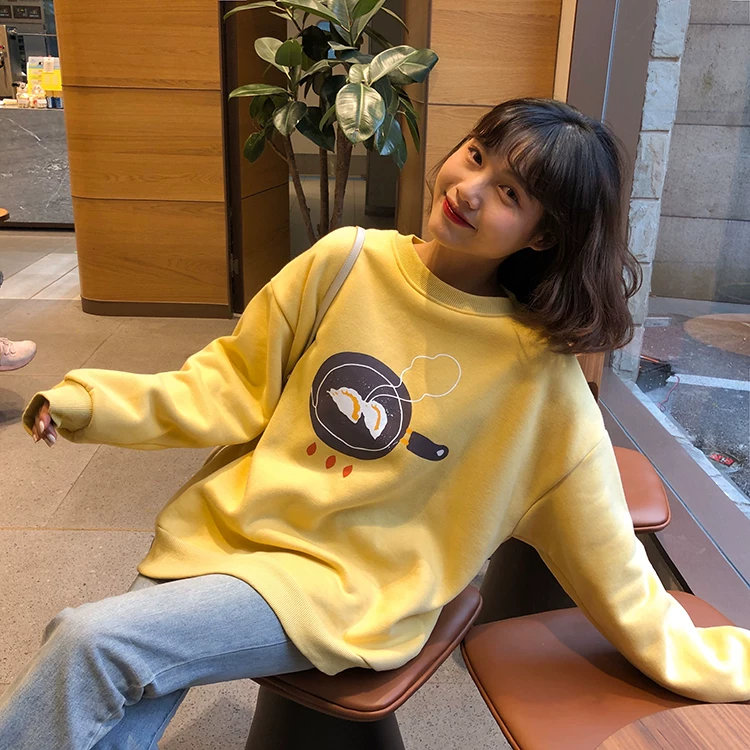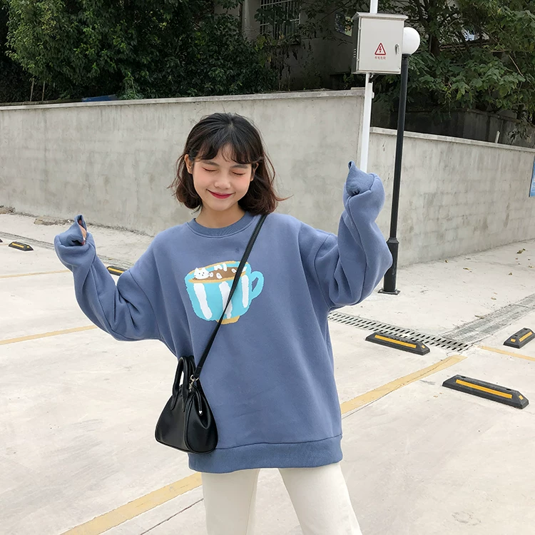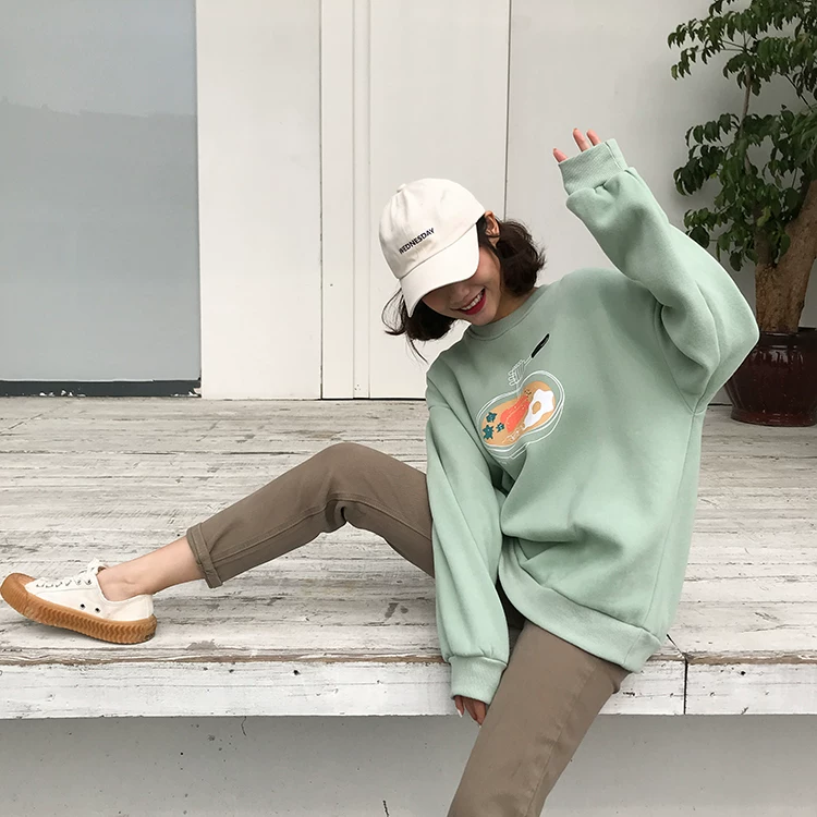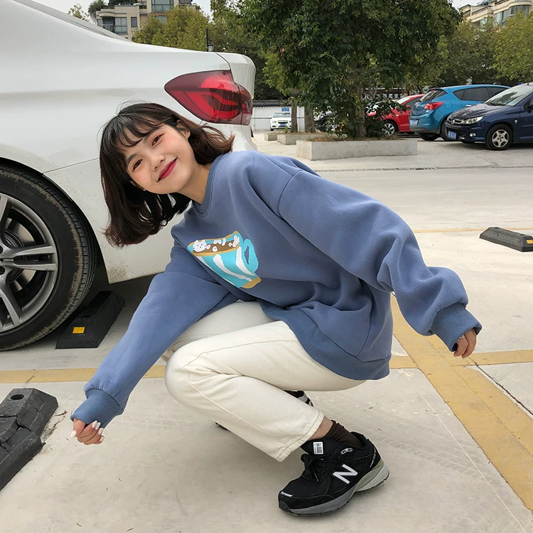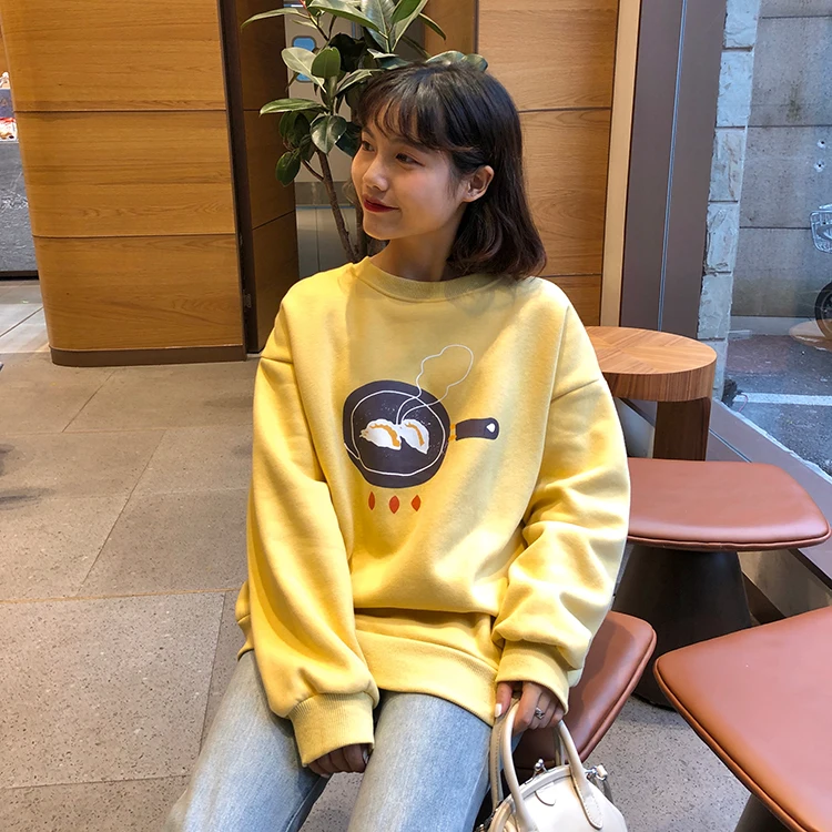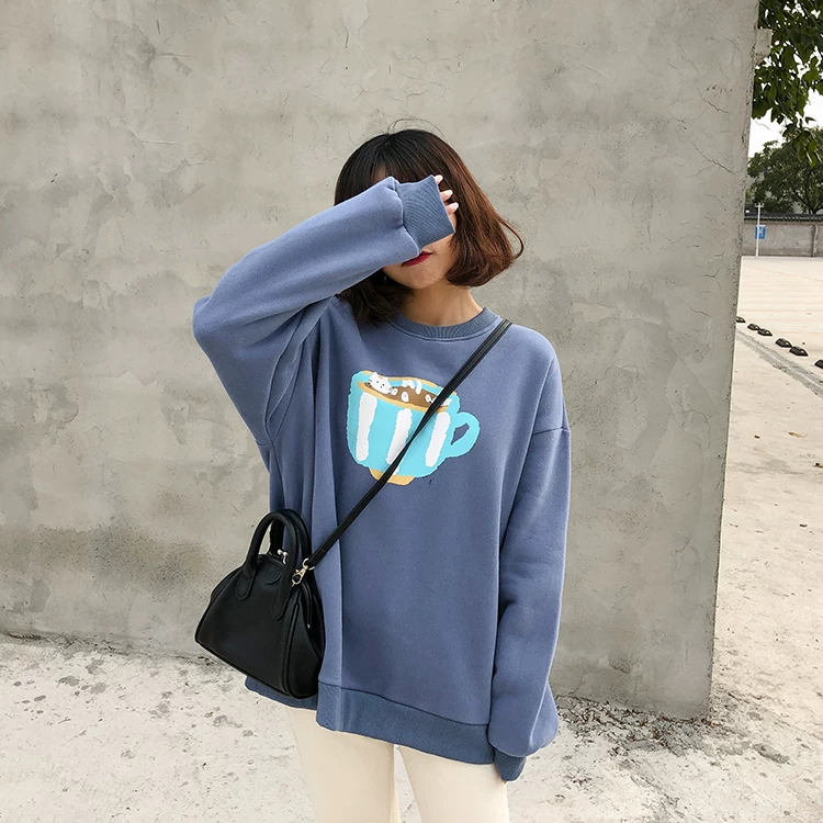 Женская милая Повседневная Свободная Толстовка в Корейском стиле с героями мультфильмов, Женская Толстовка в японском стиле Харадзюку, одежда Ulzzang для женщин