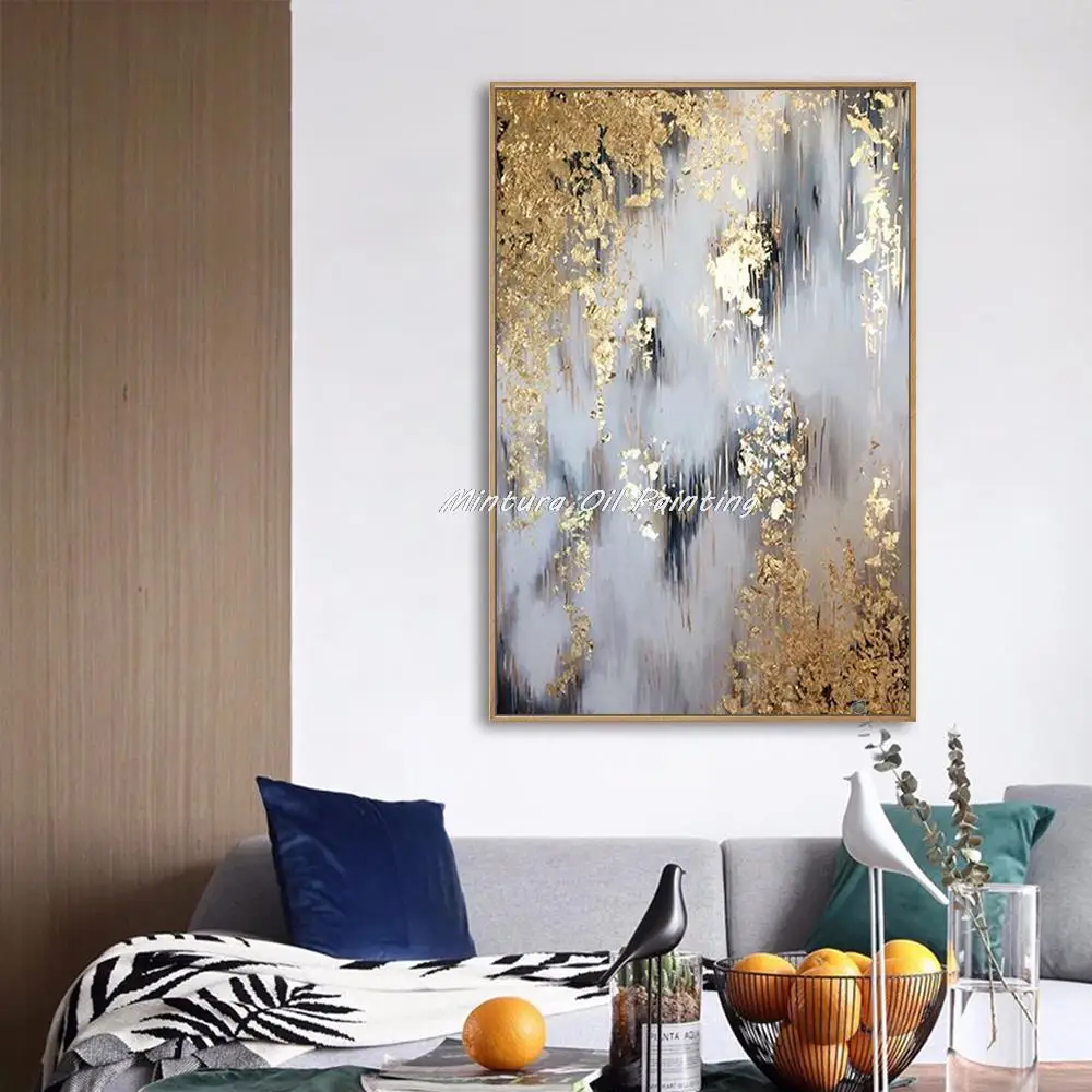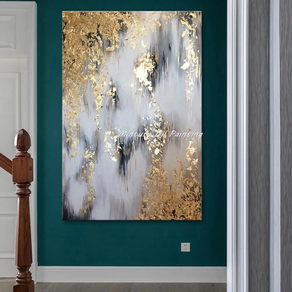 Mintura Art Ручная роспись Золотая фольга абстрактные картины маслом на холсте плотная текстура Современный домашний декор Настенная картина для гостиной