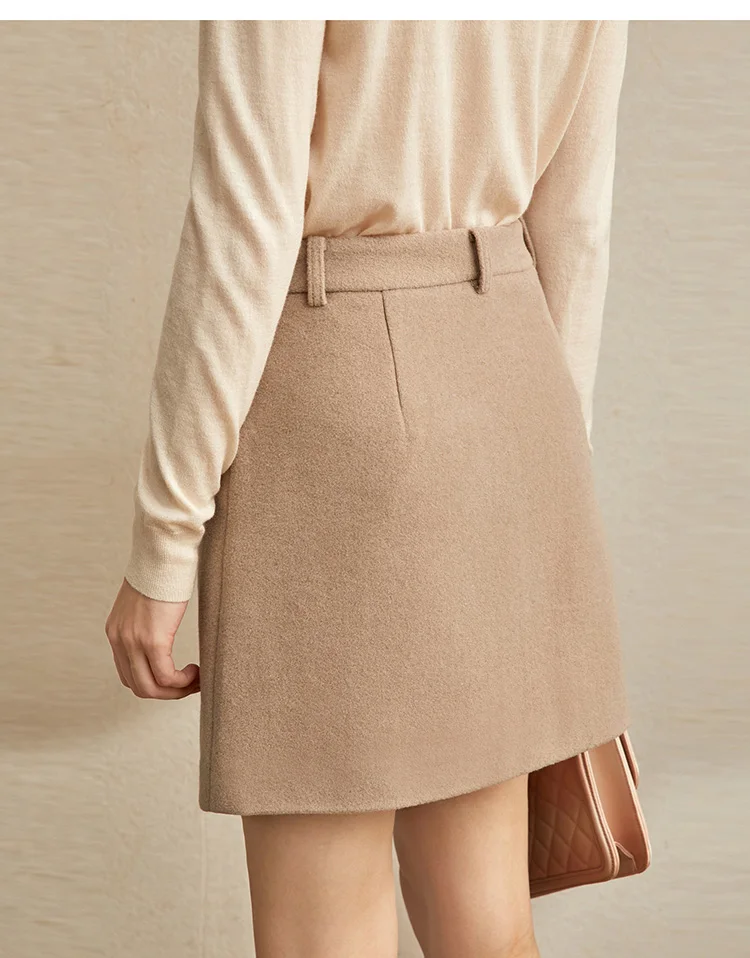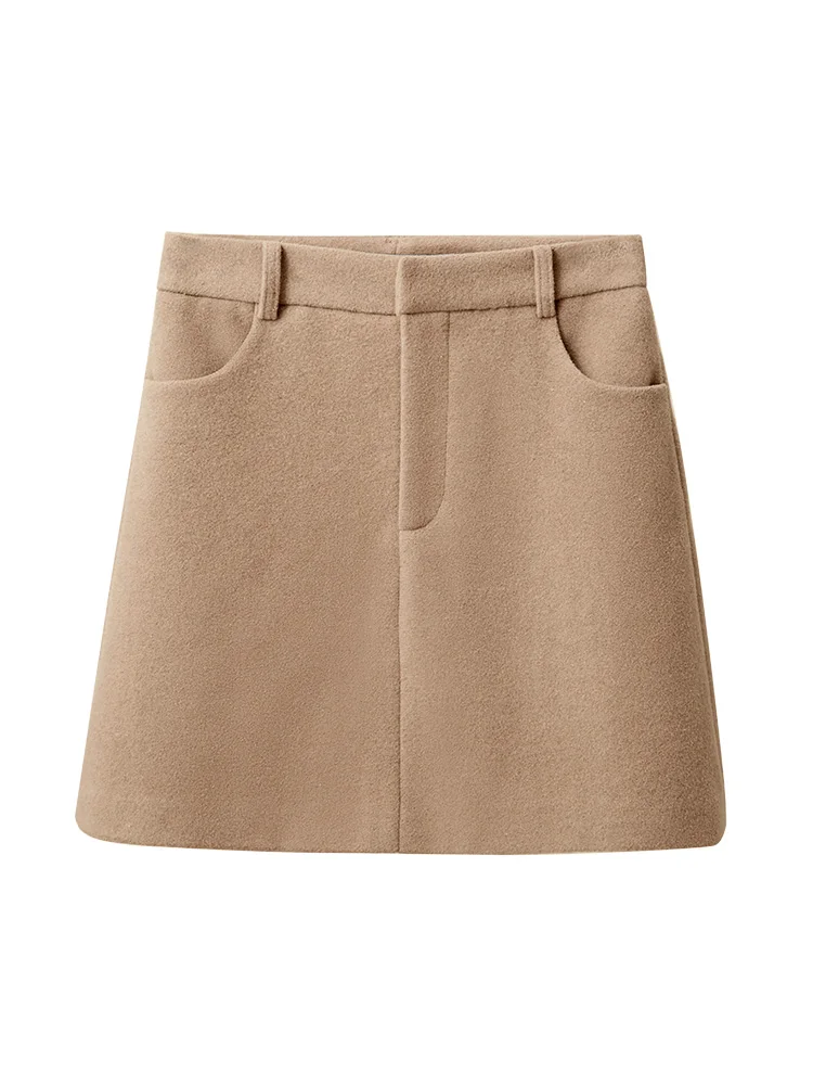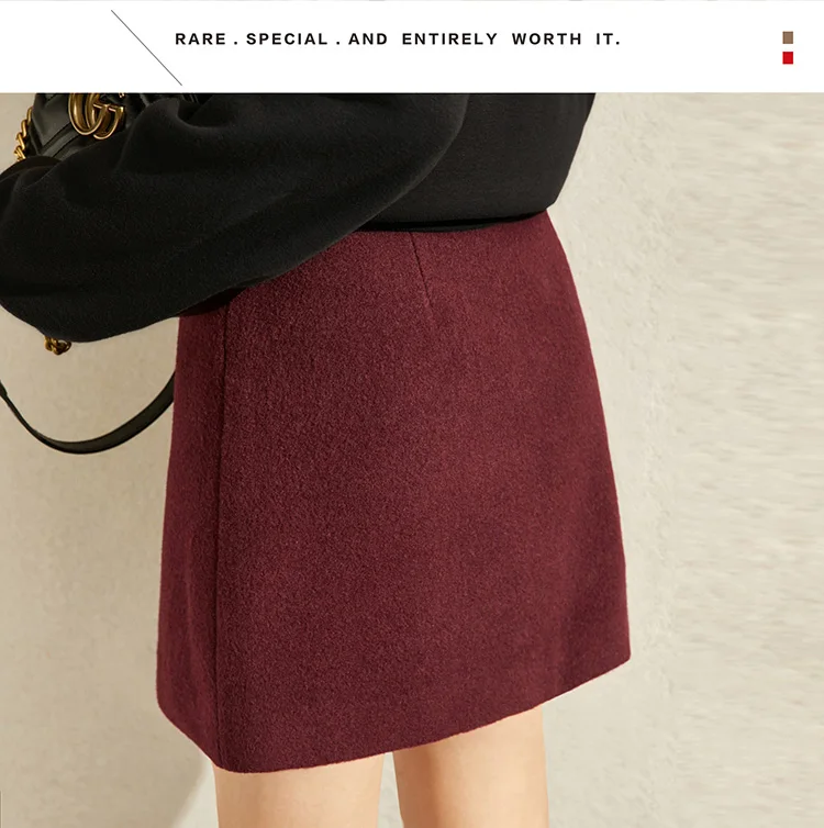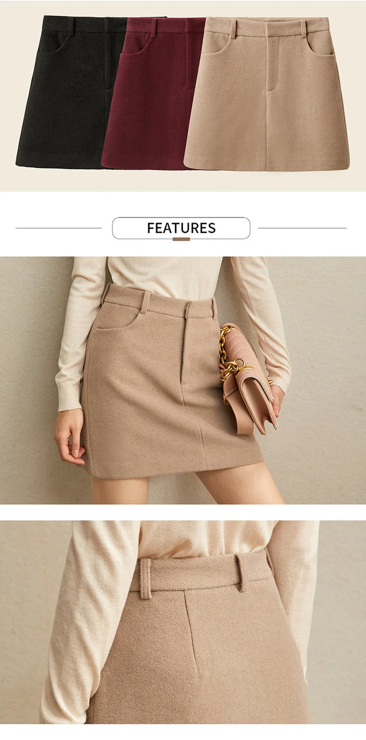 Женская шерстяная мини-юбка Amii, элегантная однотонная приталенная Повседневная однотонная мини-юбка на молнии с карманами, Осень-зима 11930455