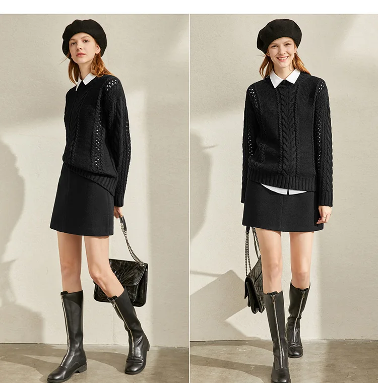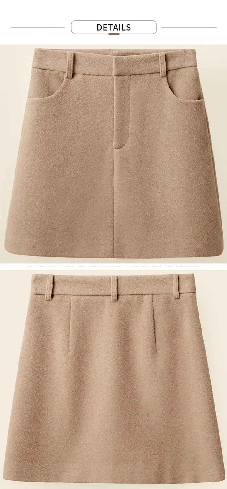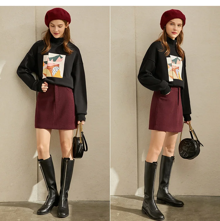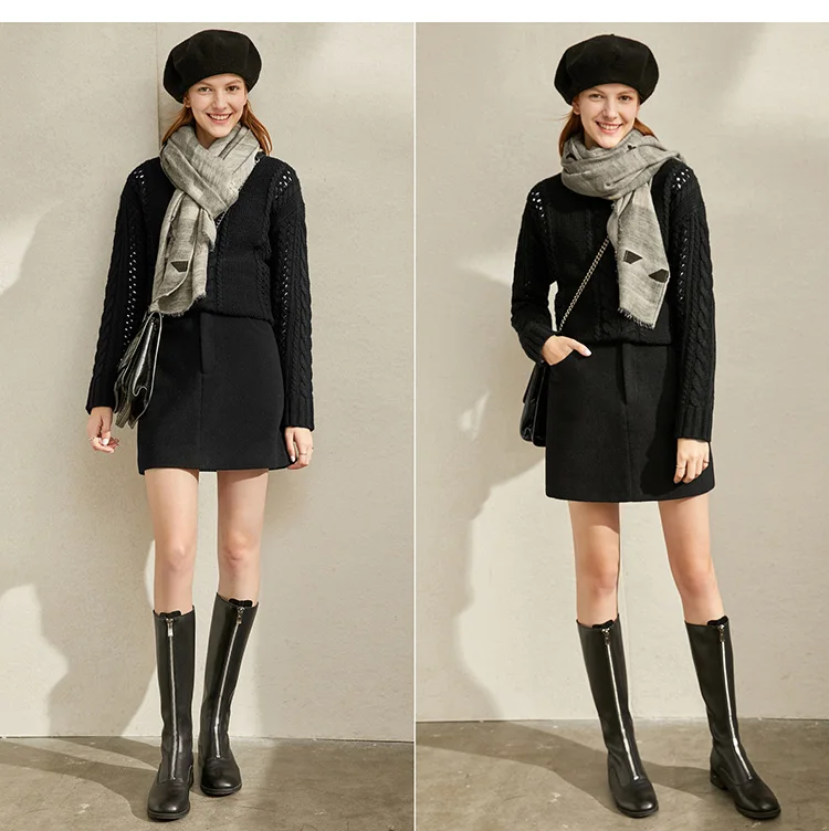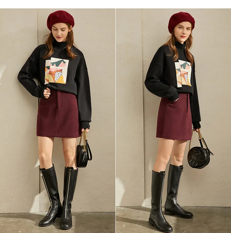 Женская шерстяная мини-юбка Amii, элегантная однотонная приталенная Повседневная однотонная мини-юбка на молнии с карманами, Осень-зима 11930455