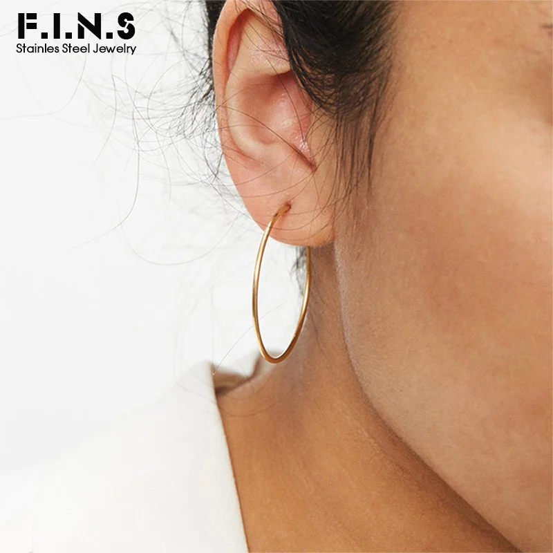 Тип камня: F.I.N.S, большие серьги-кольца 40 мм для женщин, большие круглые серьги из нержавеющей стали, женские минималистичные серьги, модные украшения