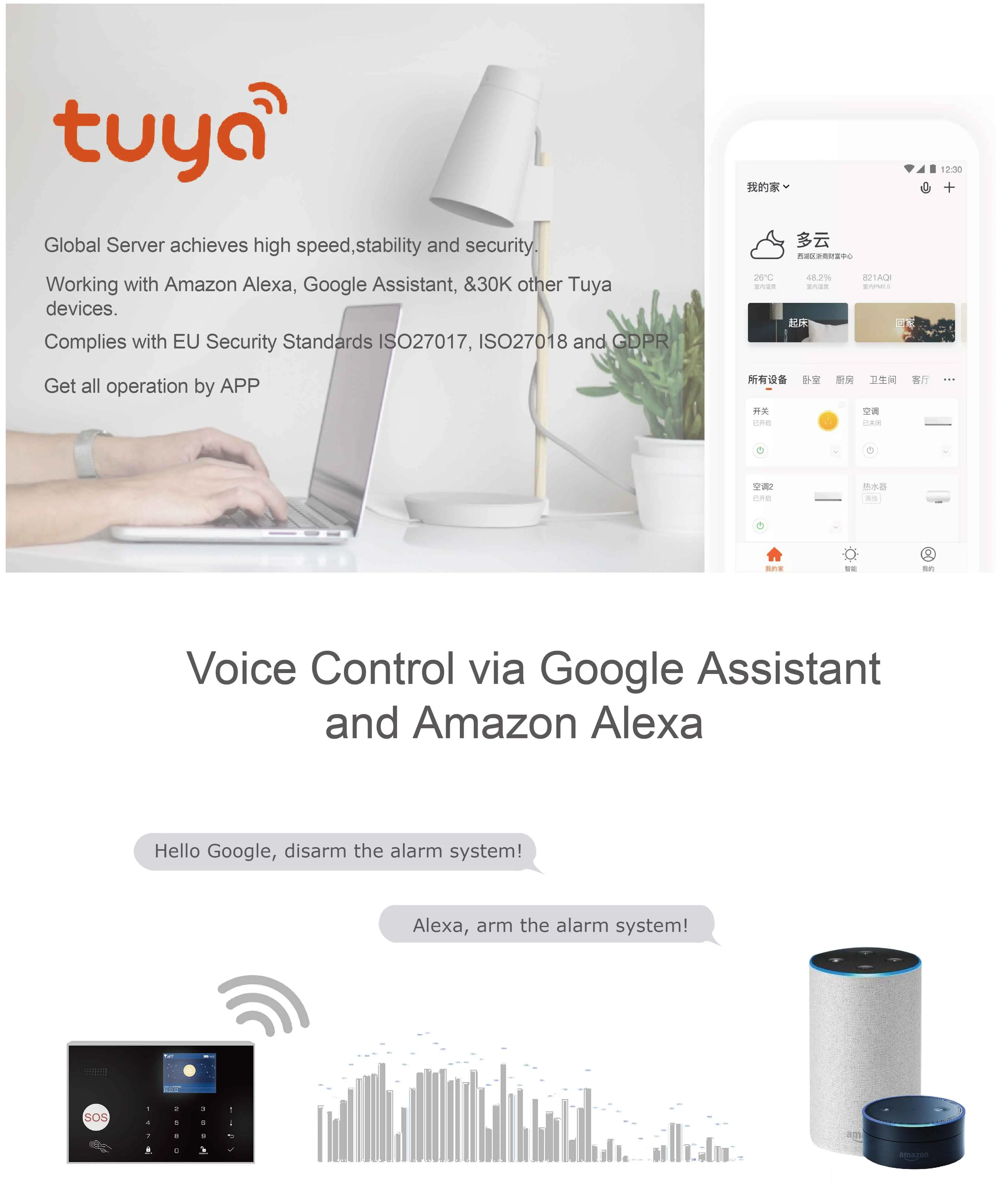 Камеры Wi-Fi работают с тем же приложением, что и система сигнализации «Tuya APP». Так что одно приложение может контролировать все предметы. Но камеры Wi-Fi не подключаются к панели системы сигнализации, они работают отдельно и по умолчанию не имеют Alexa и google assistant.