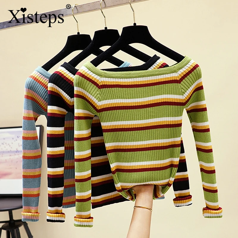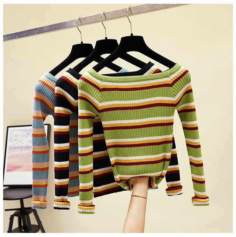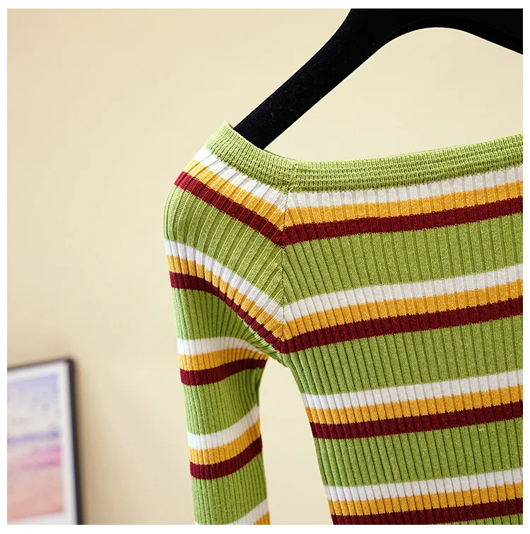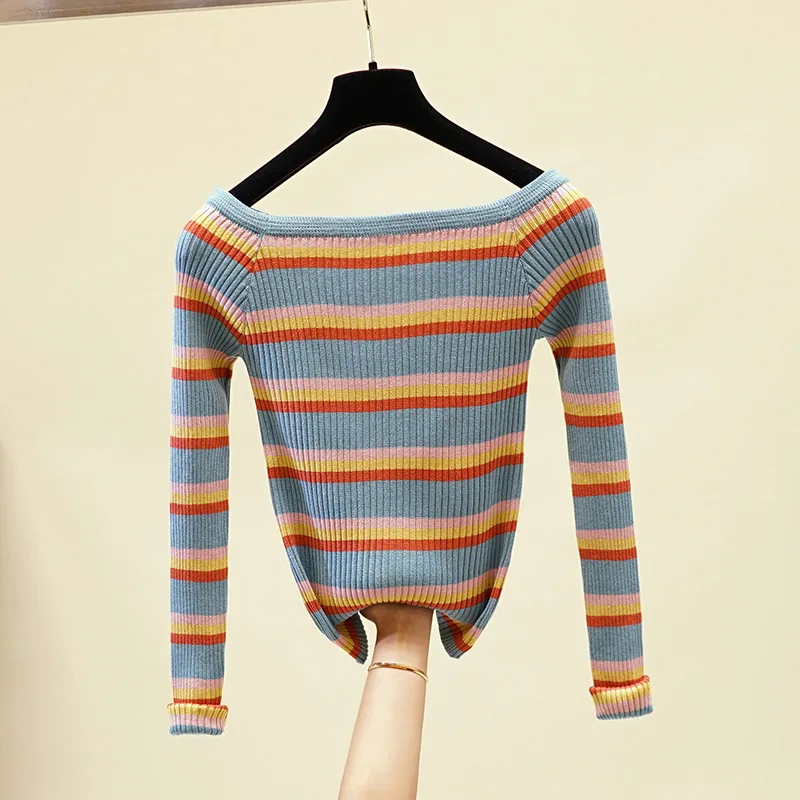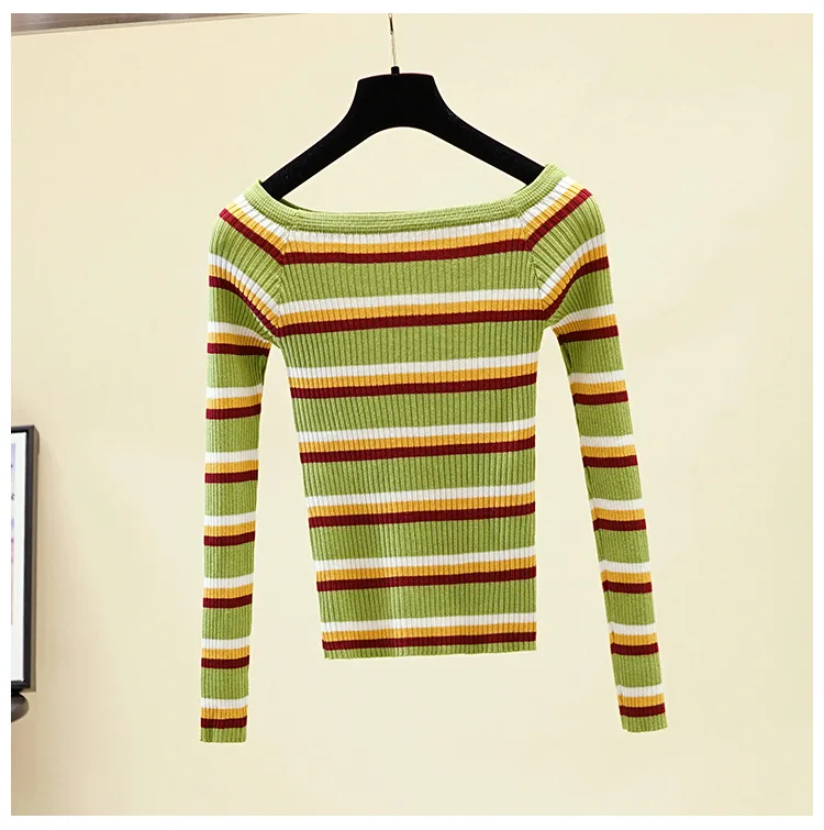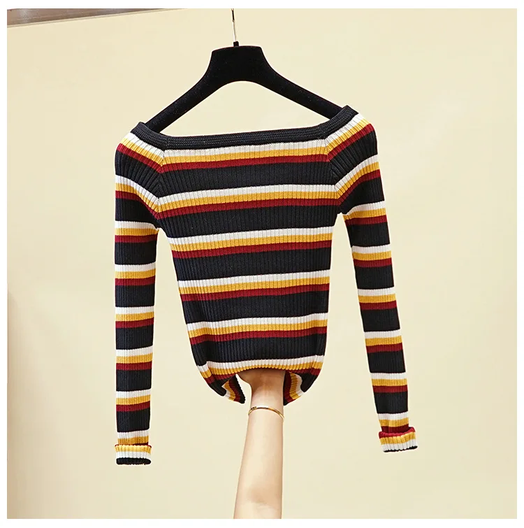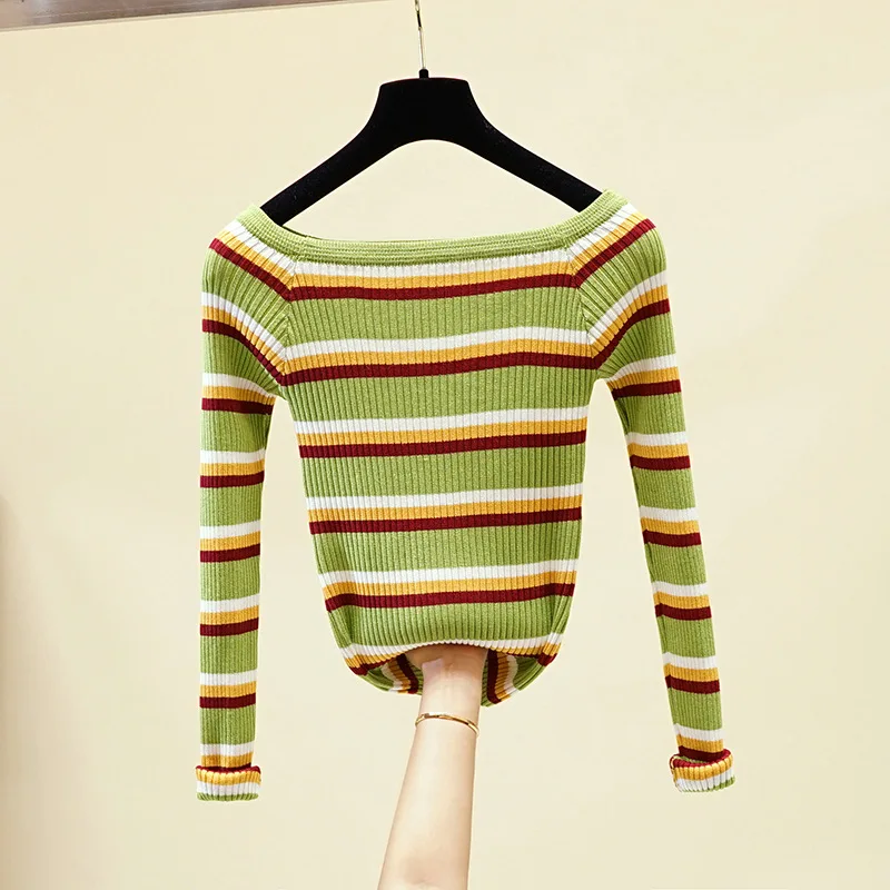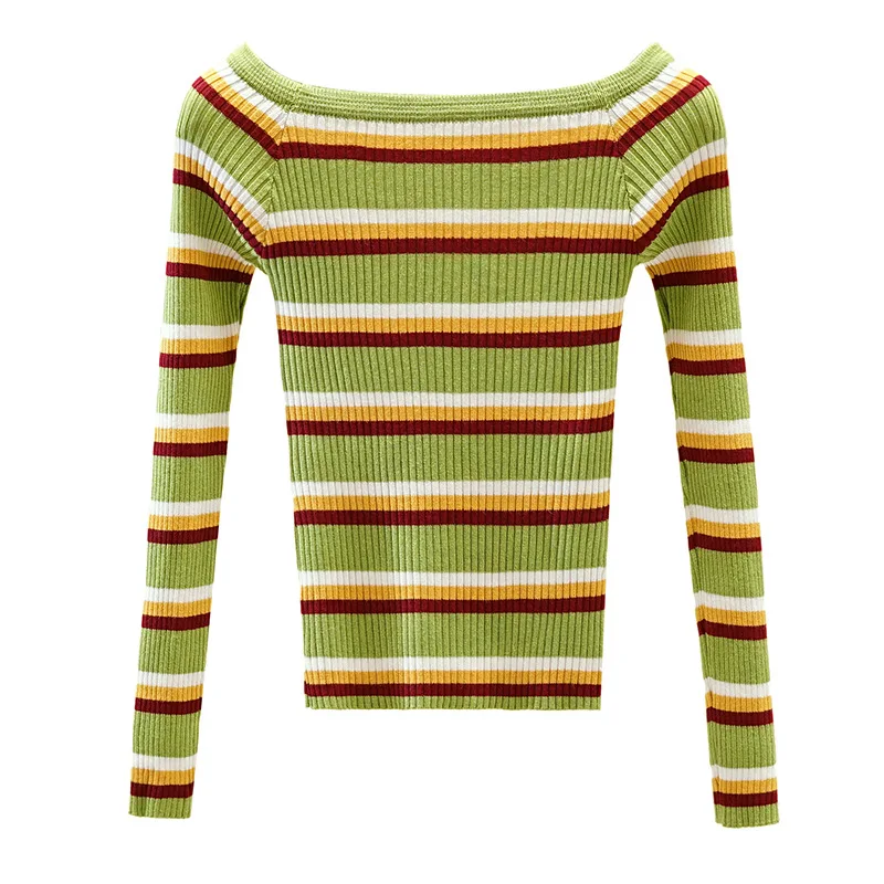 Пуловер женский трикотажный с длинным рукавом и воротником-лодочкой