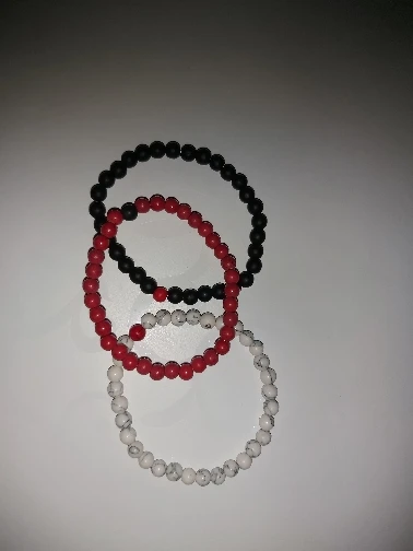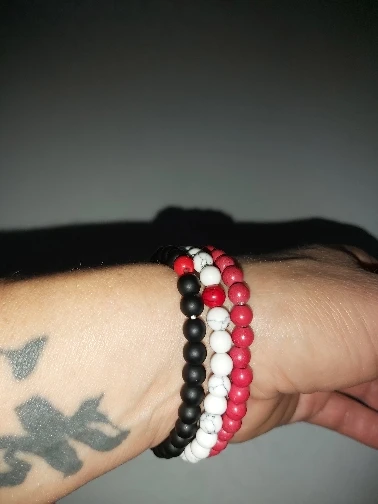товар получен СПАСИБО. Но да этих браслетов получала другие они были больше по размеру. размер этих 5-6 мм. смотрятся по другому. Белый цвет не белый. скорее серое с белым на фото как будто другие.доставка быстрая