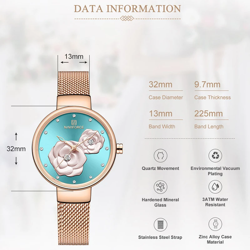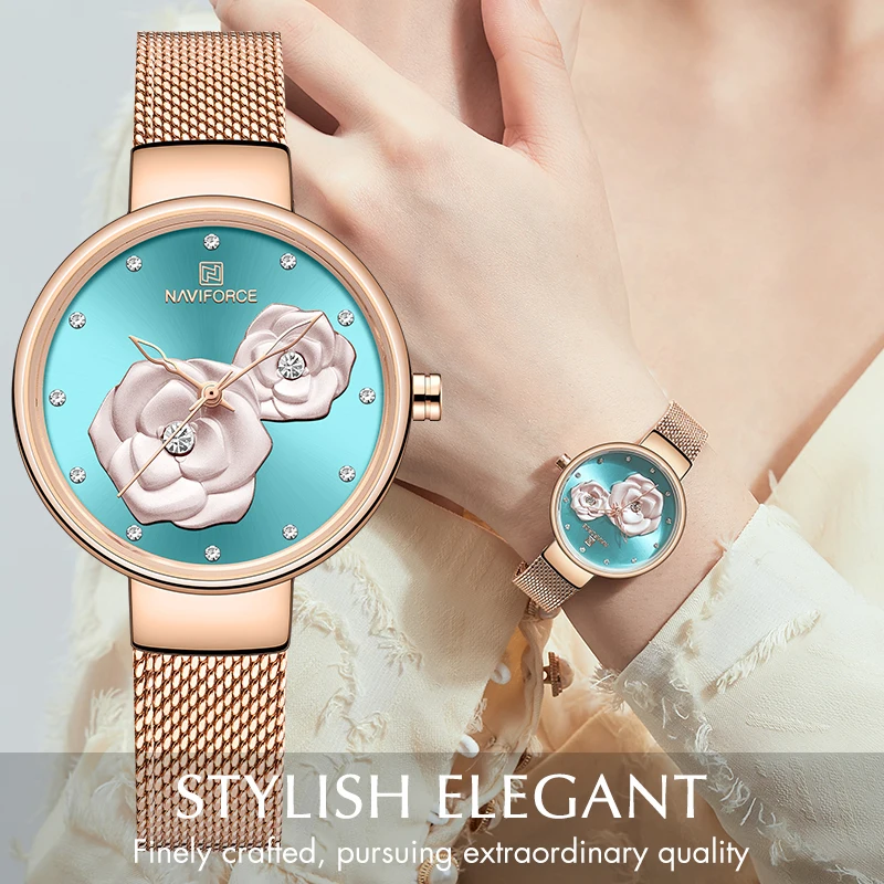NAVIFORCE, новинка, розовое золото, женские часы, платье, кварцевые часы, для девушек, Лидирующий бренд, роскошные женские наручные часы, для девушек, часы, Relogio Feminin