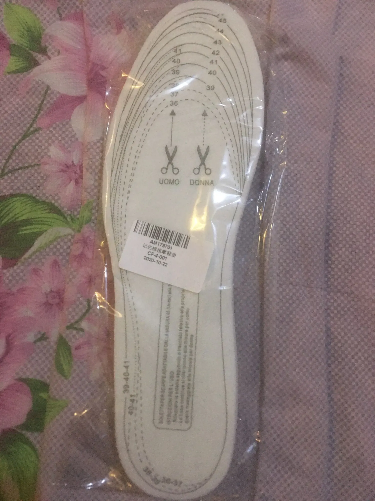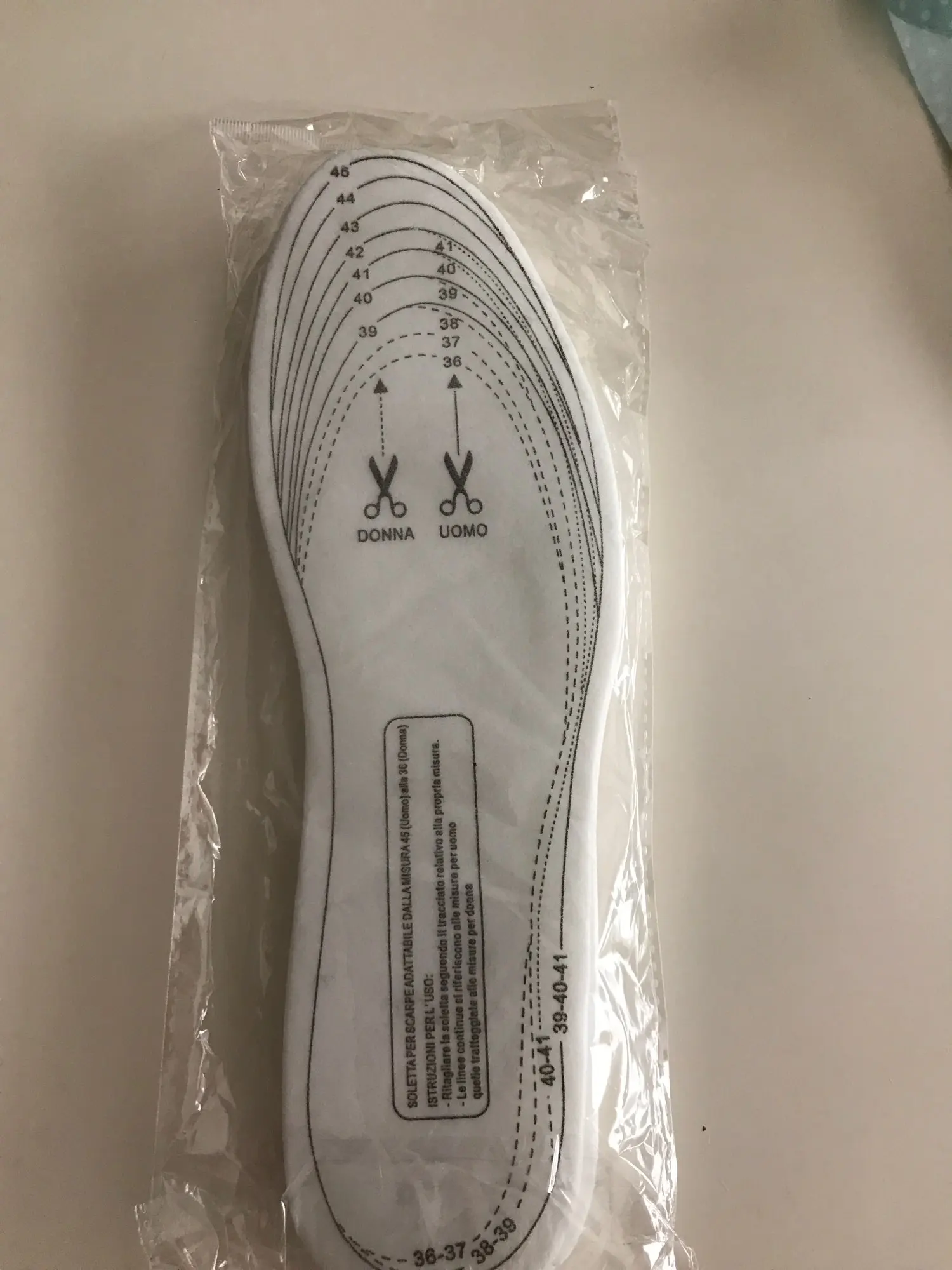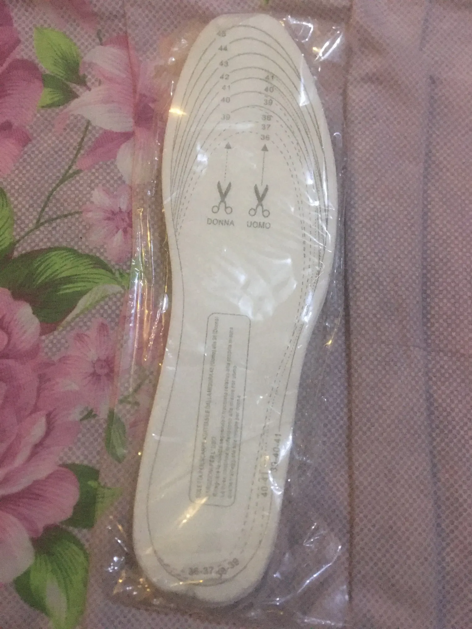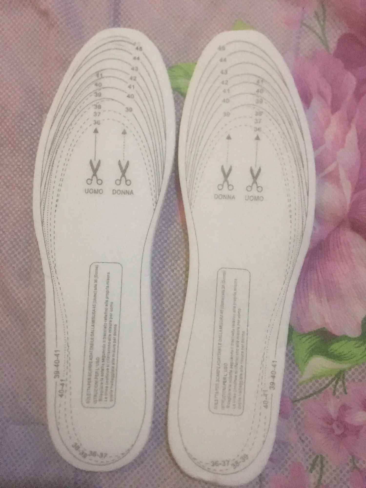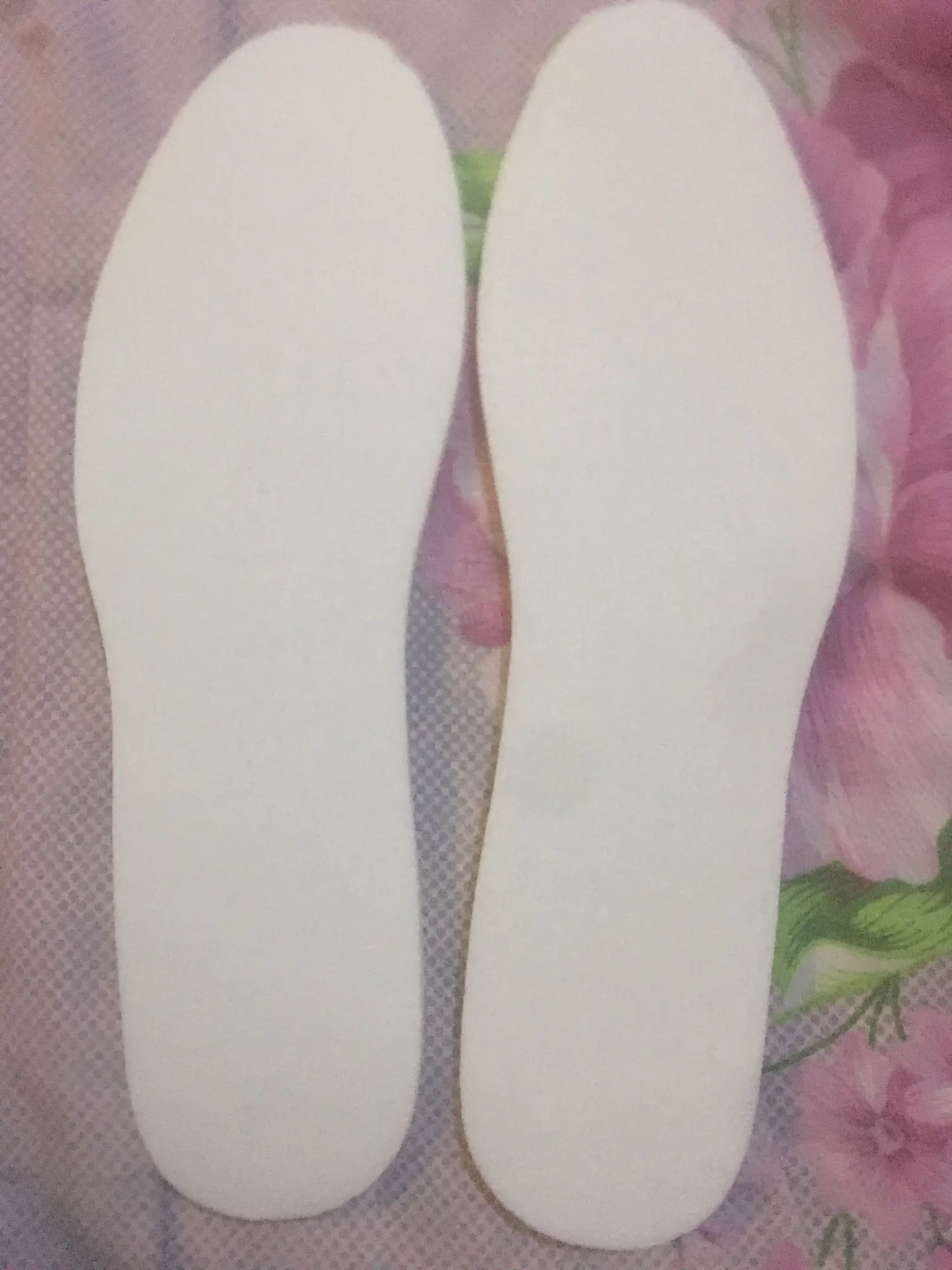 Обычные стельки (не ортопедические) из бумаги и поролона. Штрихи для вырезания нужного размера неточны.