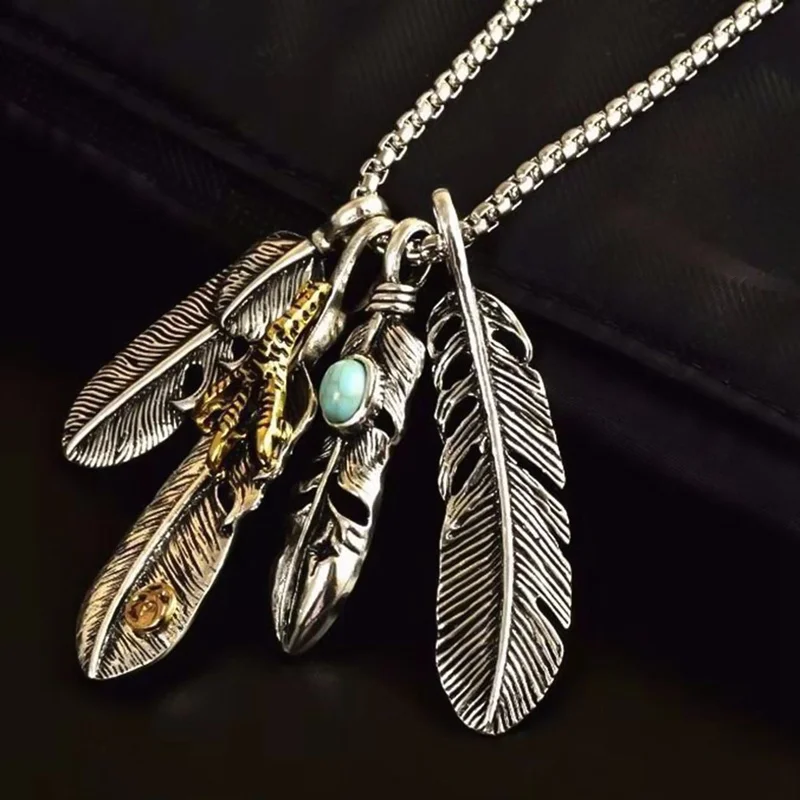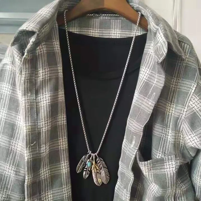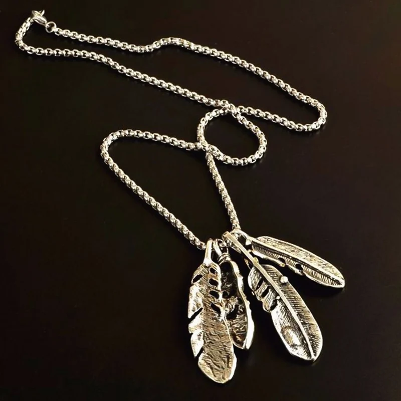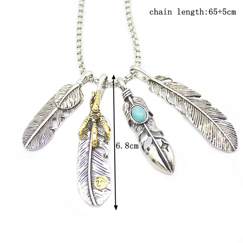 Винтажное длинное ожерелье, мужское ожерелье с подвеской в виде орла, когтя, пера, Листьев, бохо, летняя бижутерия