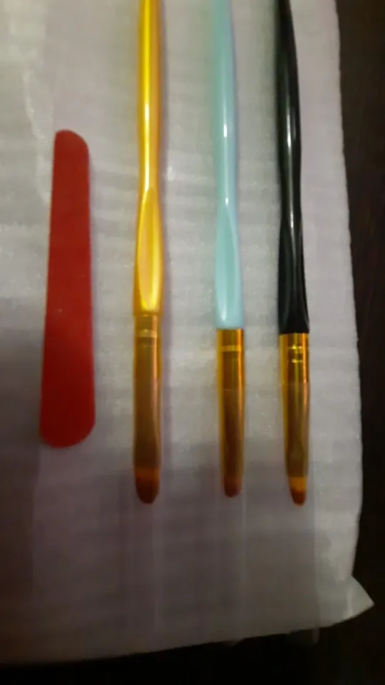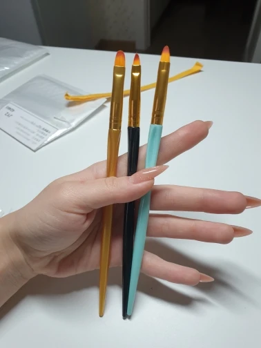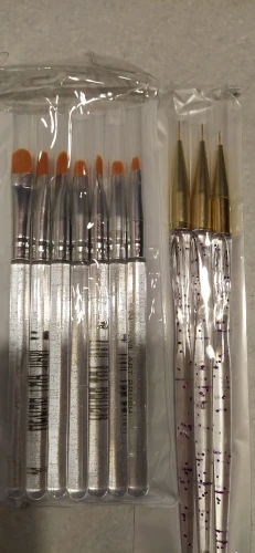 Кисти хорошие, после использования легко отмываются от гель-лака, базы, форма и качество кисти не меняется, ручка удобная, товар пришёл очень быстро, упакованы хорошо, без повреждений дошло