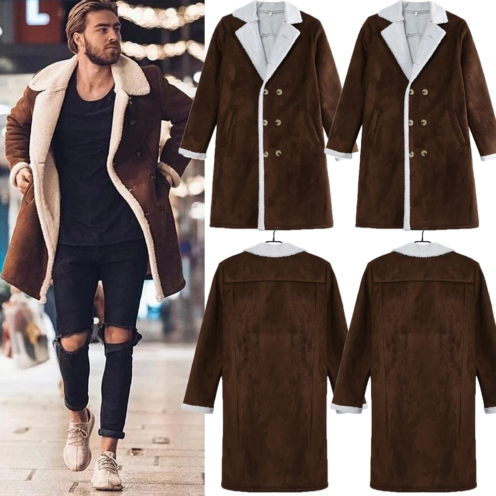 Модный мужской Тренч из искусственного меха овечьей шерсти, зимний ...