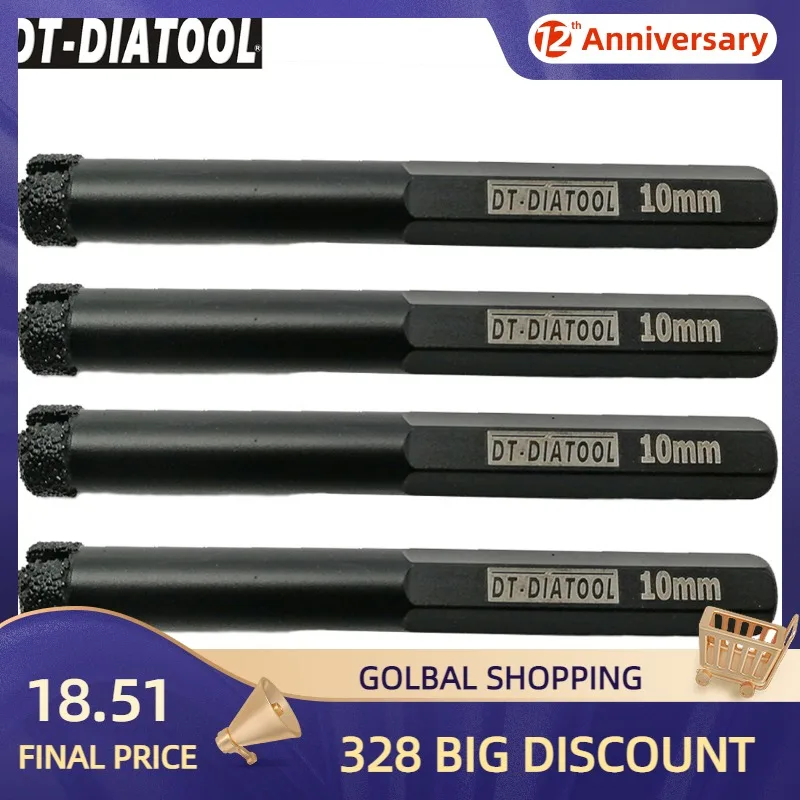 Бриллиантовые вакуумные сверла с шестигранным хвостовиком диаметром 10 мм, 4 шт., для влажного сверления камня, гранита, мрамора, керамикиплитки, пила для отверстий