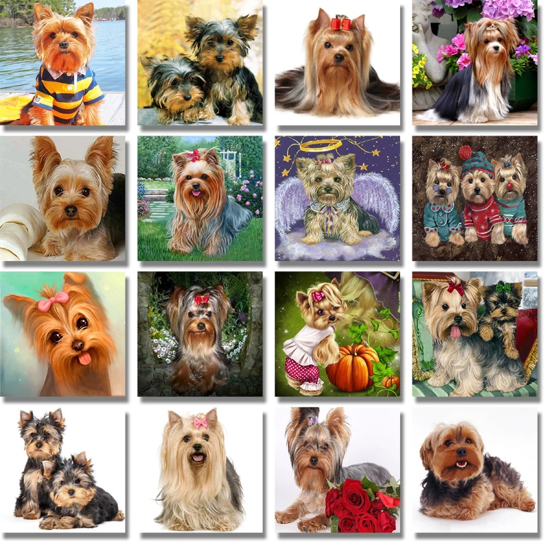 Алмазная картина 5D "сделай сам", йоркширский терьер, полностью круглая картина для Стразы, алмазная вышивка, картина с животными, алмазы