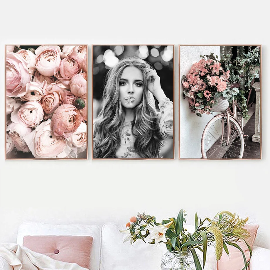 Настенные постеры в скандинавском стиле с изображением розовых лепе...