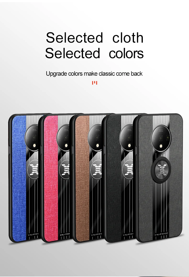 Чехол для OnePlus 7 Pro, Роскошный Жесткий тканевый чехол с кольцом...