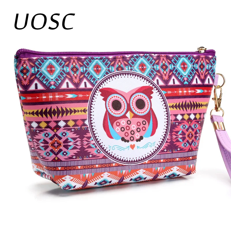 UOSC винтажная женская косметичка, полосатая Ретро сумка с милой совой, органайзер для красоты, дорожная сумка, Несессер для туалетных принадлежностей