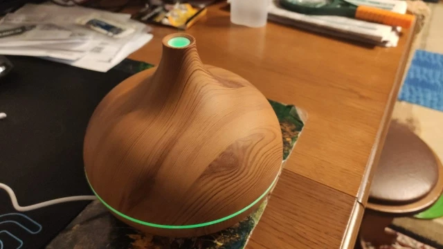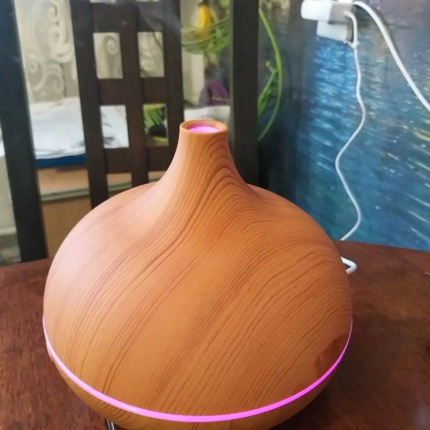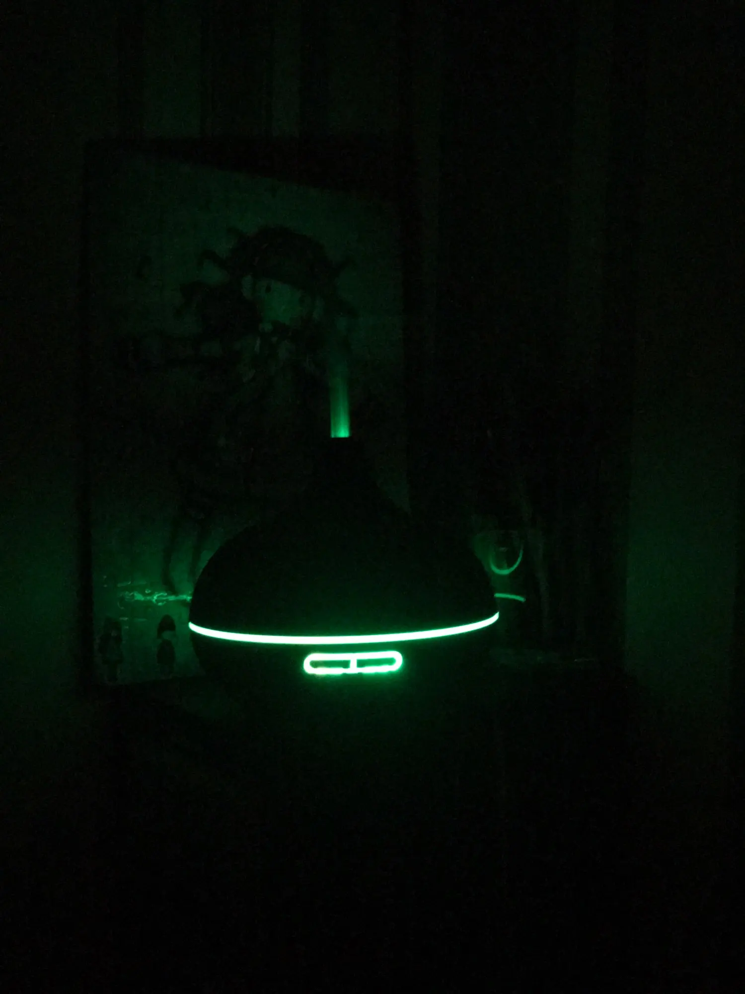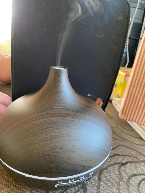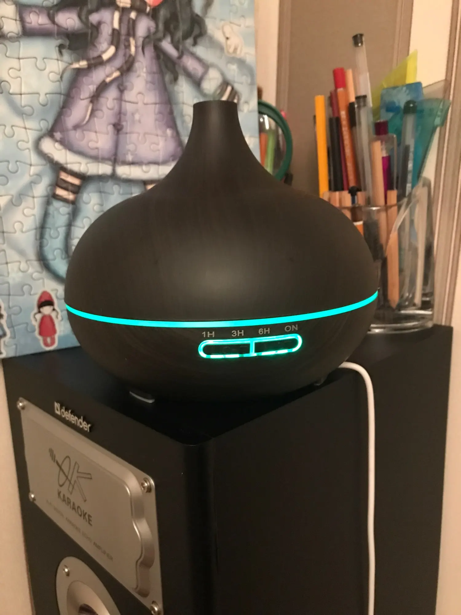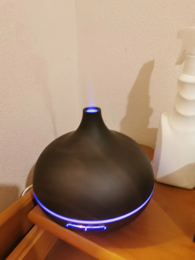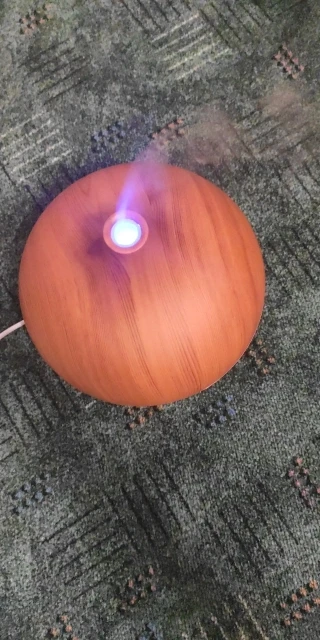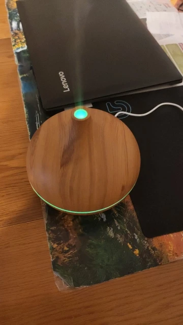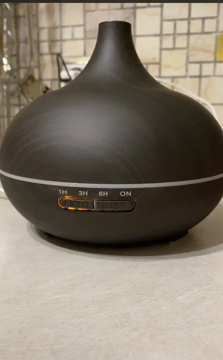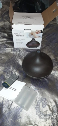 классный диффузор, дошел быстро. классно что можно карать эфирные масла. объем хороший. работает достаточно тихо,но ночью естественно слышно,но быстро привыкаешь. единственное светиться в темноте достаточно ярко. меняет цвет подсветки.