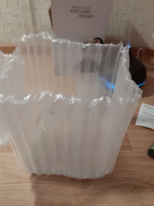 Очень хорошо упаковано! Отлично выполняет свою работу! Я буду тестировать с эфирными маслами. Это очень хороший увлажнитель! Я рекомендую!