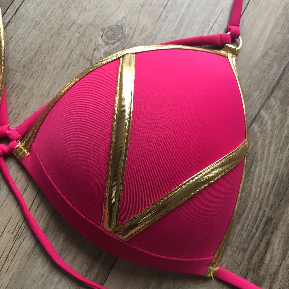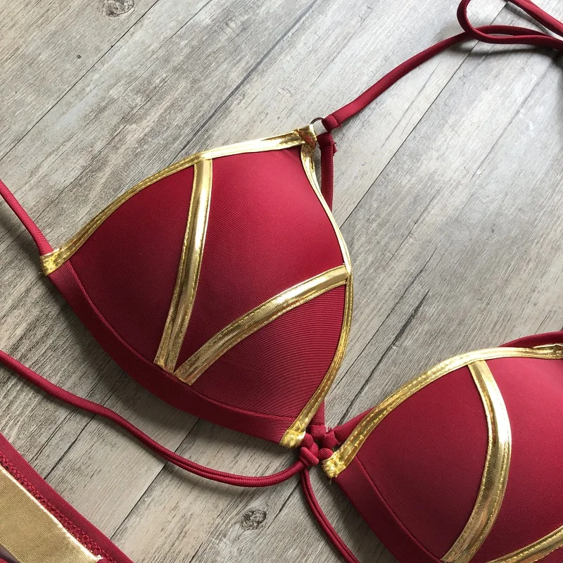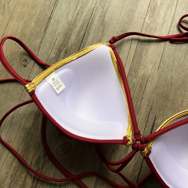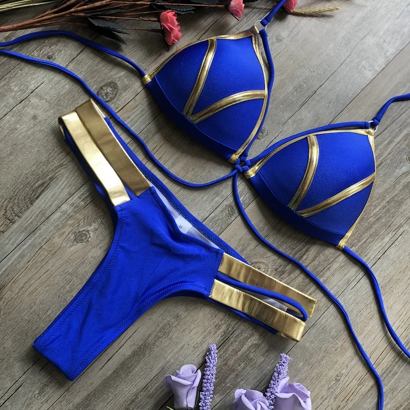 Женский комплект бикини с золотым тиснением, сексуальный мягкий женский купальник с пуш-ап, пляжная одежда, Бразильский купальный костюм, 2019