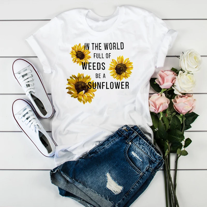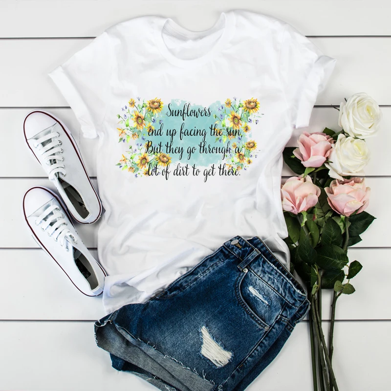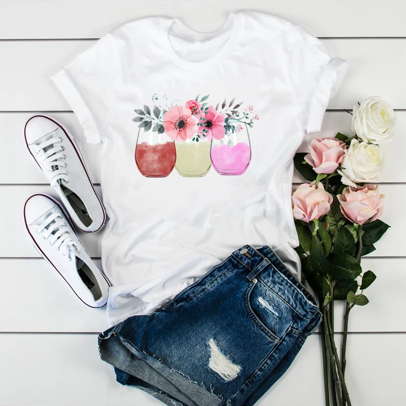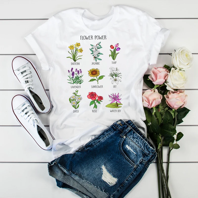 Женская футболка с цветочным принтом, с рисунком