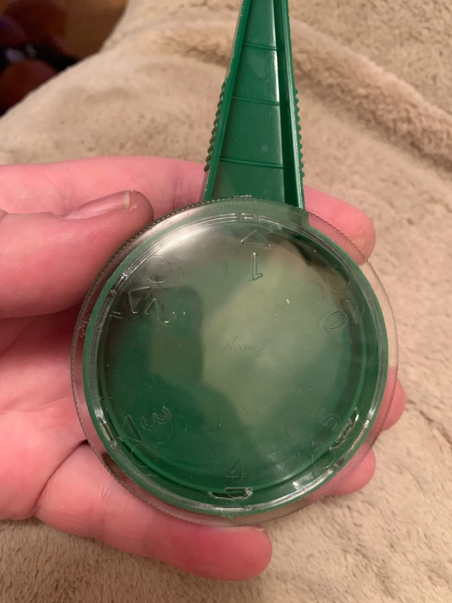Зеленая часть слегка согнута, поэтому отверстие больше, чем должно сделать этот товар менее пригодным для использования.