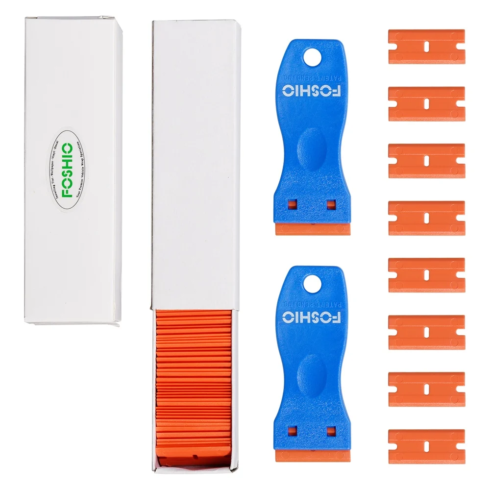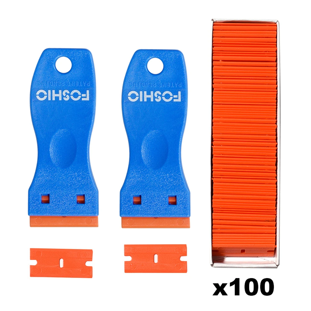 FOSHIO 2 шт. карбоновая пленка Бритва для чистого бритья скребок и 100 шт. 1,5 "двойное лезвие бритвы для автомобильного окна Тонировка автомобиля клей для наклеек Съемник