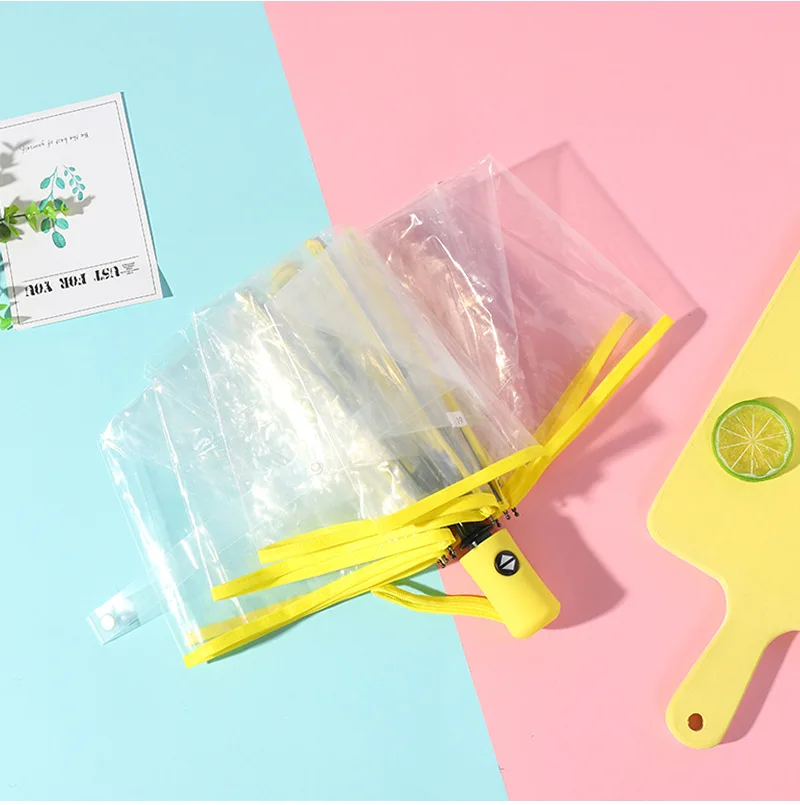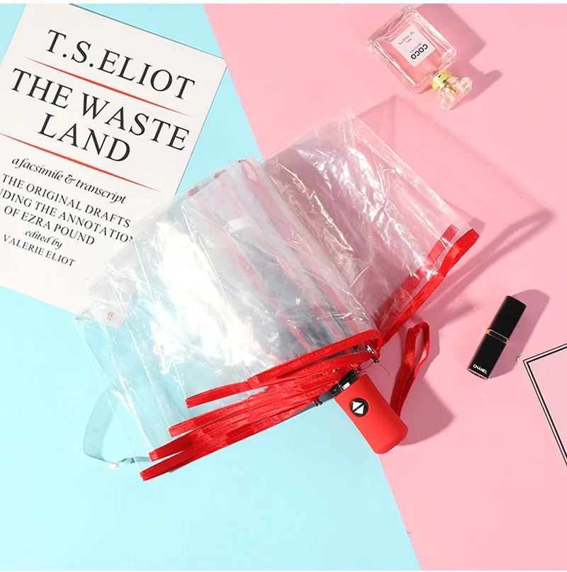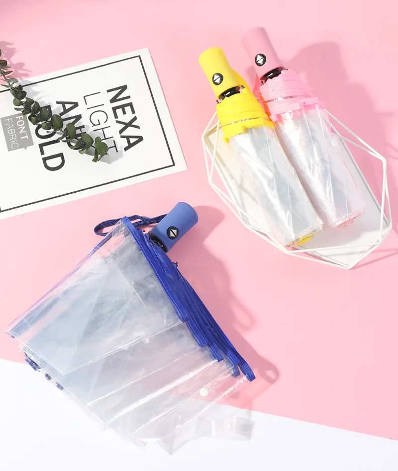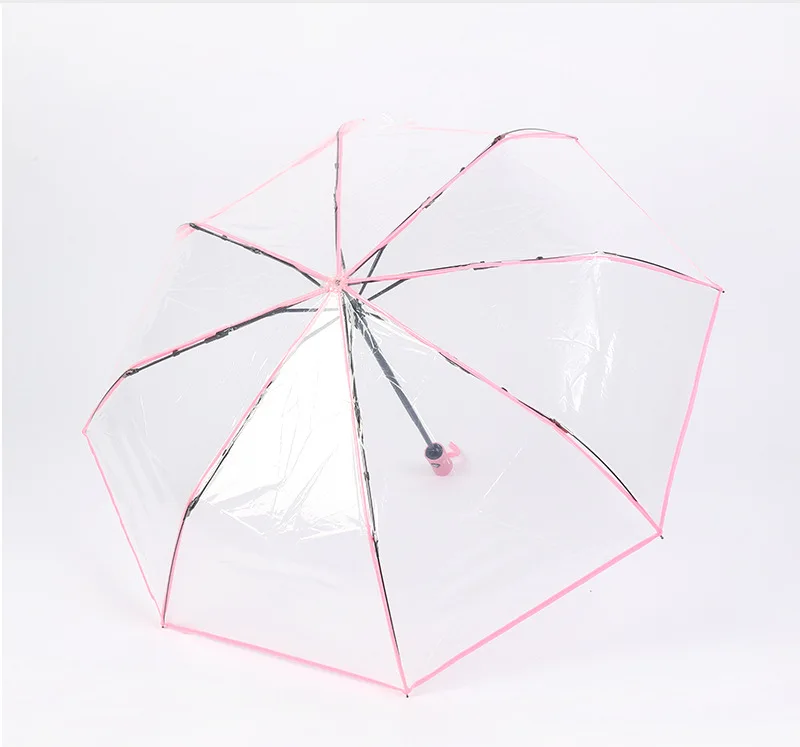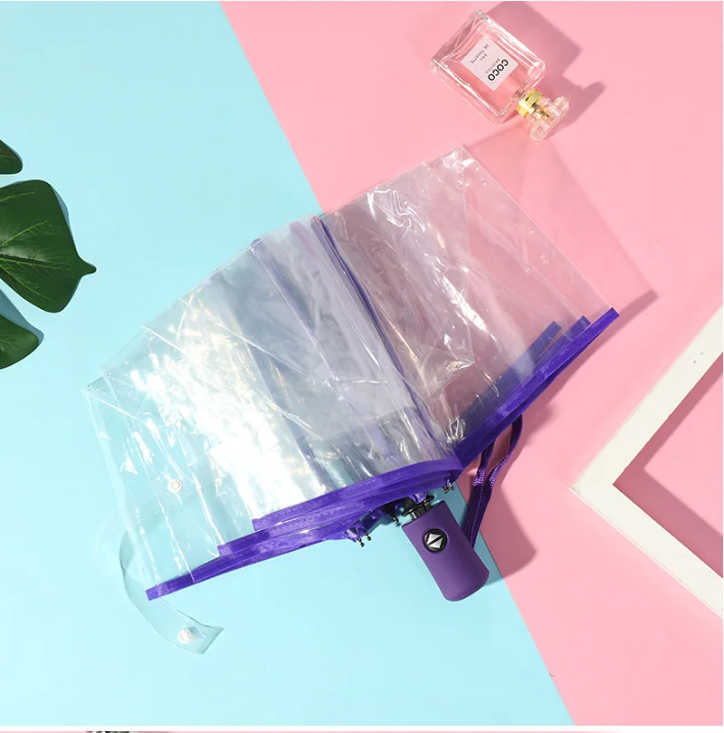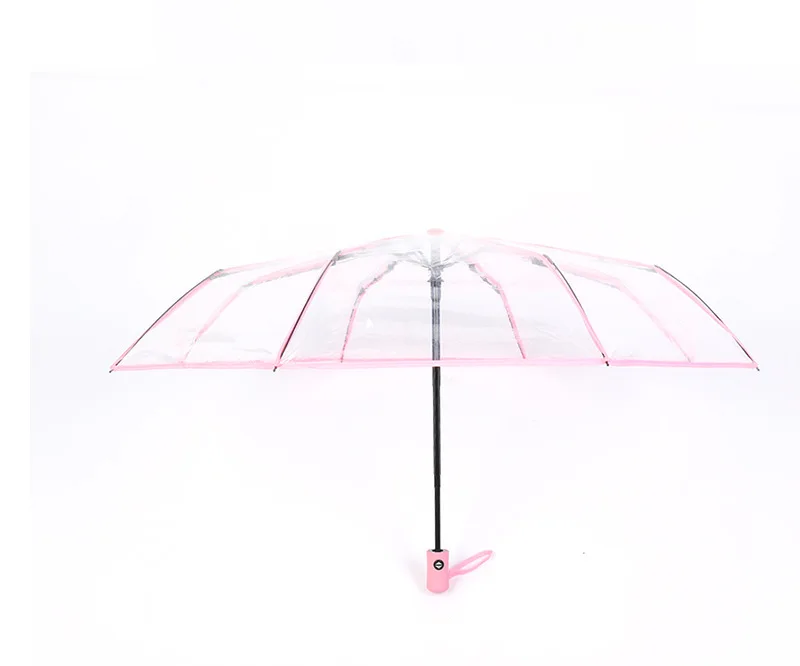 Зонт женский, прозрачный, тройной складной, ветрозащитный
