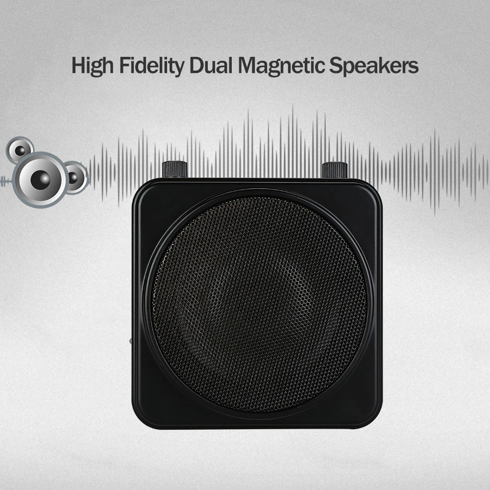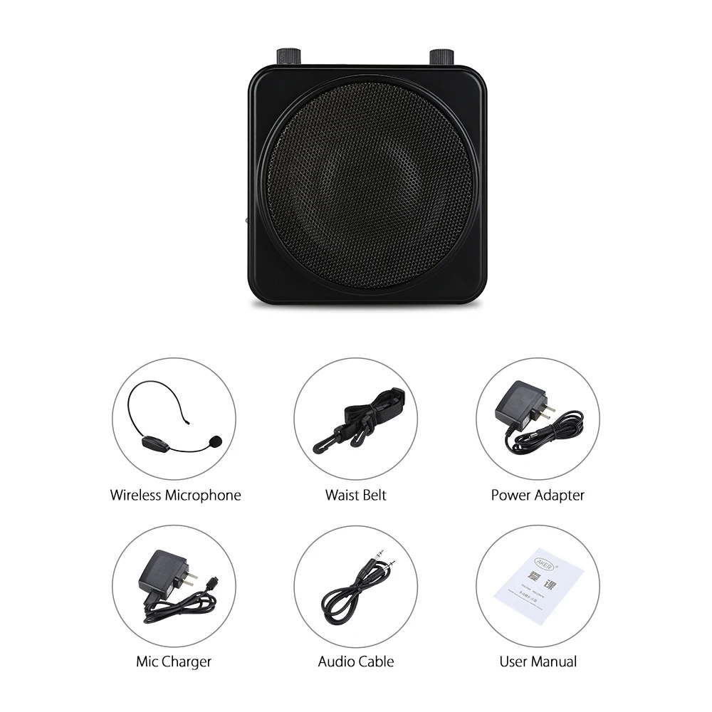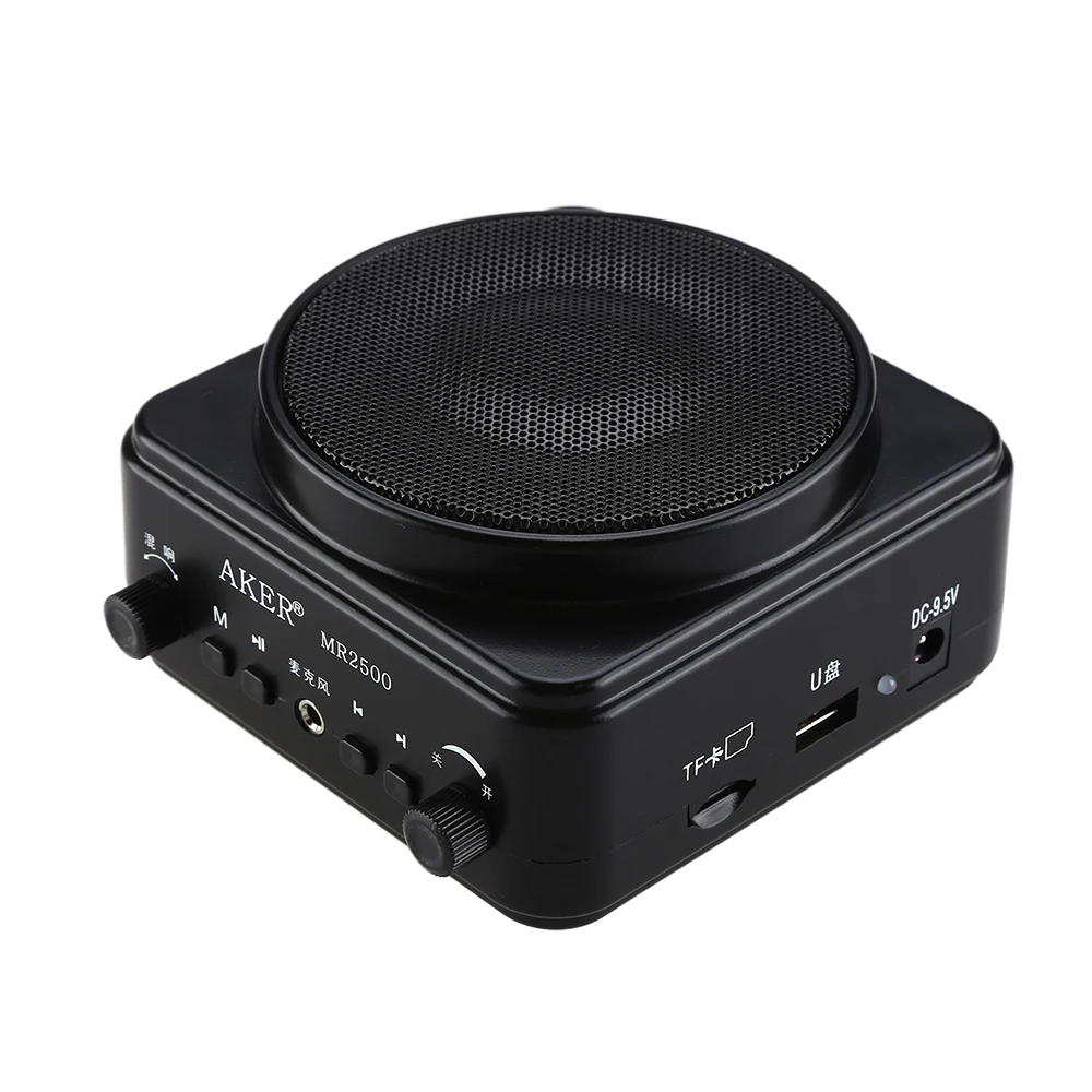 Особенности:Бренд: AKERМодель: MR2500W.Цвет: черный.Высокочастотная Беспроводная передача UHF.Поддержка беспроводного подключения bluetooth.С беспроводным микрофоном, расстояние беспроводной передачи до 50 м.Материал: АБС (акрилонитрил бутадиен-стирол).Рабочая температура: -10 ℃ ~ 60 ℃.Максимальная выходная мощность: 22 Вт.Операционной Напряжение: 7,4 V.Тип батареи: перезаряжаемая литиевая батарея.Большая Емкость аккумулятора: 2200 мАч, время использования 12 часов при полном зарядном устройстве.Длительный срок службы батареи.Поддержка формата: tf-карта, u-диск.Формат воспроизведения: APE MP3 WAV WMA.3,5-дюймовый высокоточные колонки.Очень громкий, отличная четкость, низкие отзывы. Звук покрывает более 1000 квадратных футов.Может также использоваться MP3-динамик. Усилитель имеет вход микрофона и MP3 входДва входных порта, один для микрофона и один для звукового входа от устройств, таких как MP3-плеер. Оба входных порта могут использоваться одновременно.Подключи и работай, прост в использовании. Посылка включает в себя:1 x усилитель голоса MR2500W1 х беспроводной микрофон для гарнитуры1 х аудио кабель1 х адаптер питания1 х Регулируемый поясЗарядное устройство для микрофона-1 шт.