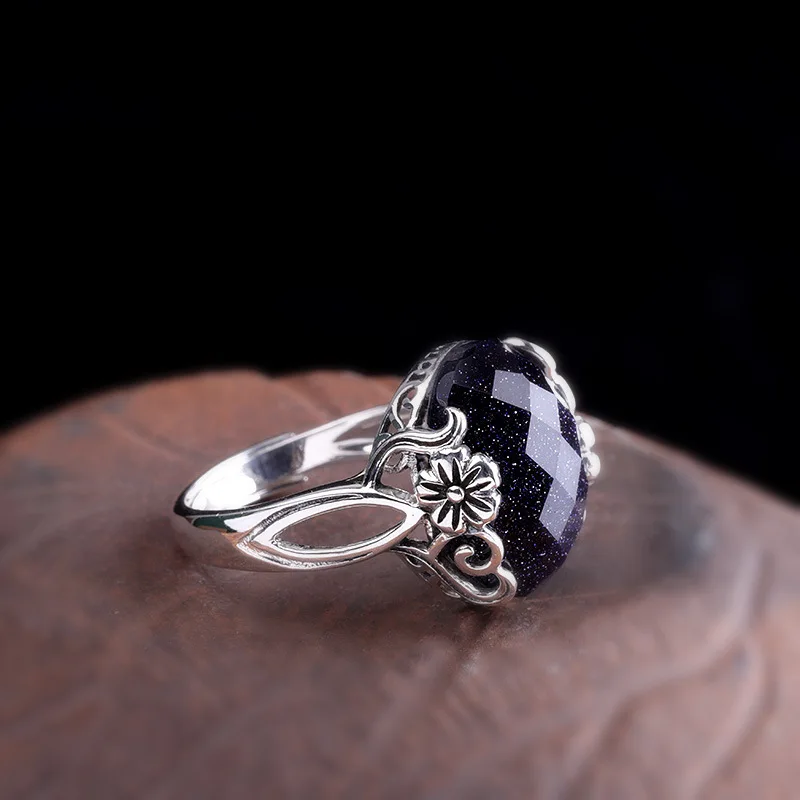 Винтажное тайское серебряное кольцо с маленькими цветами для женщин, Настоящее серебро 925 пробы, регулируемые Открытые Кольца, овальные ювелирные изделия из халцедона R806