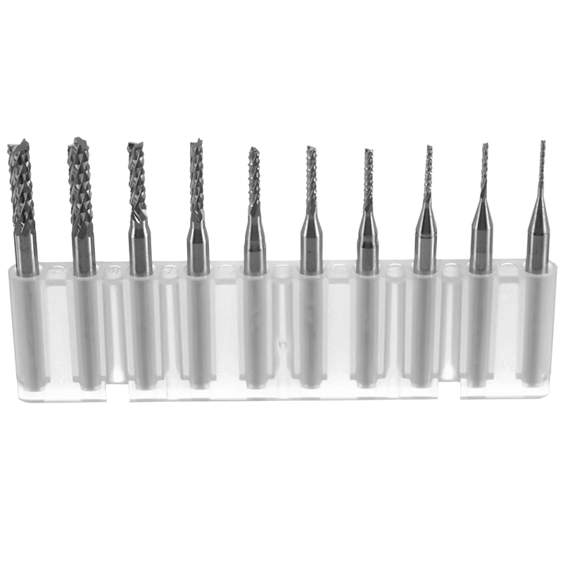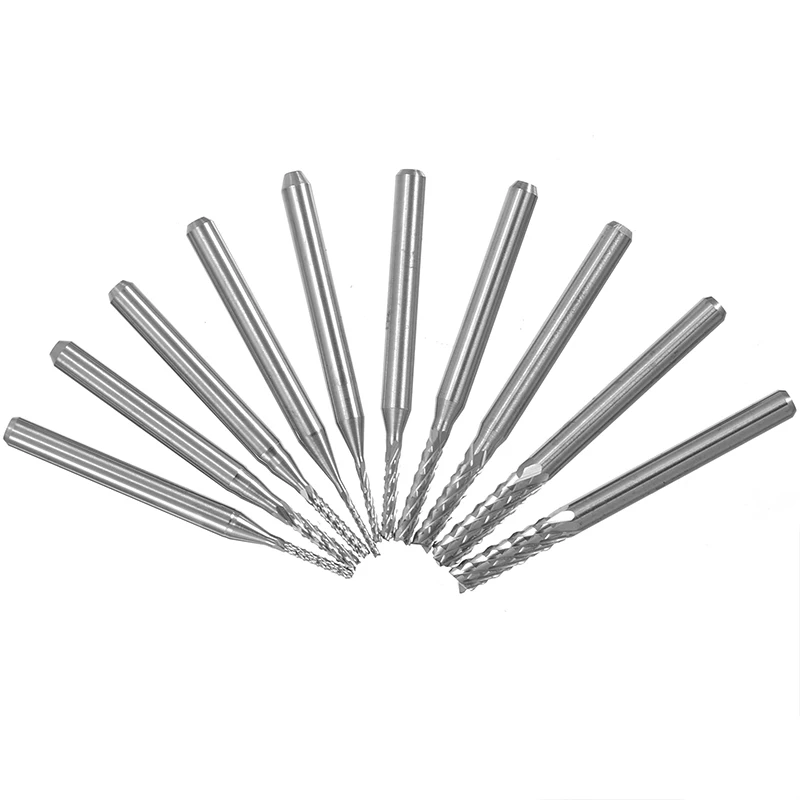 10 шт. 18 "твердосплавная Концевая фреза Набор печатных плат гравировальный резак роторные сверла с ЧПУ 0,8-3,175 мм