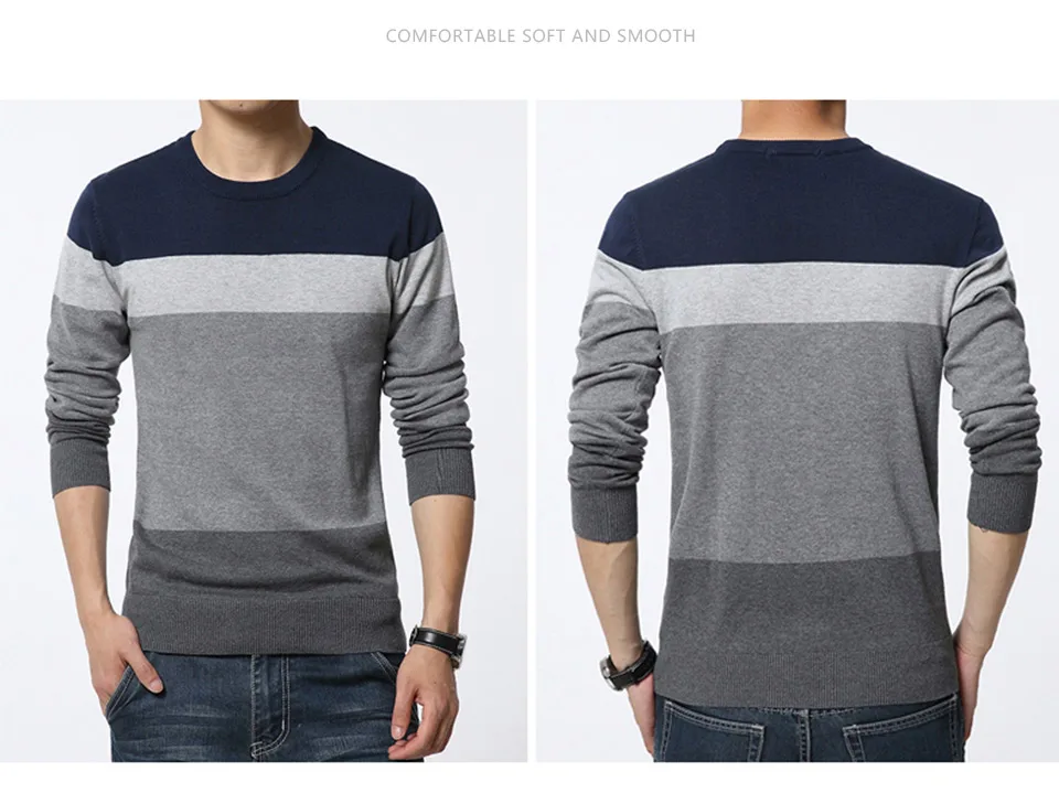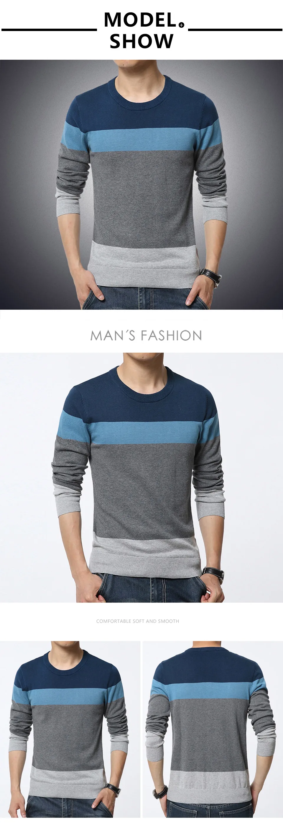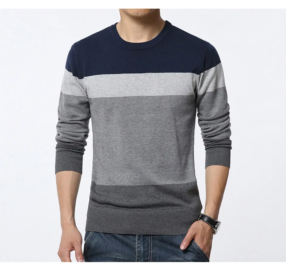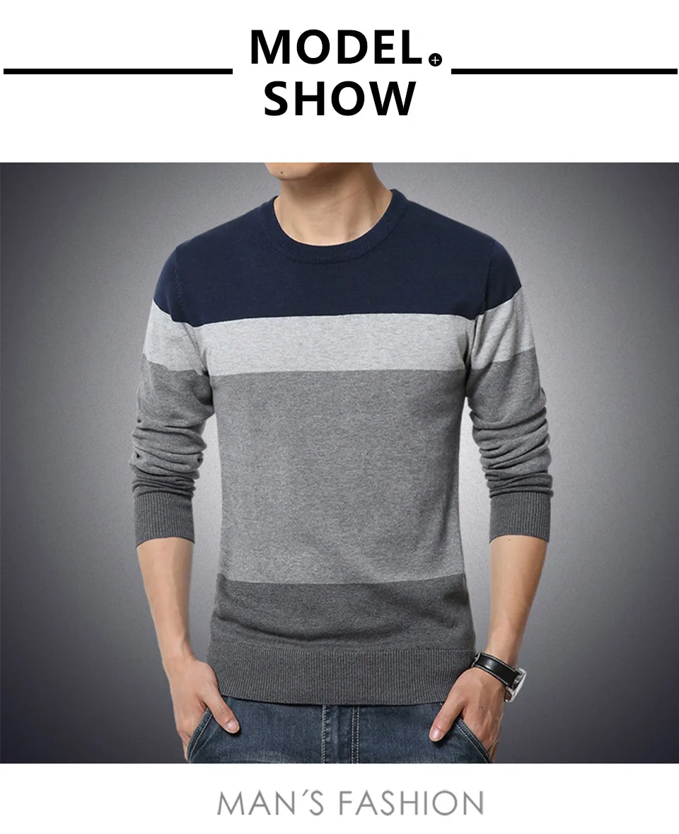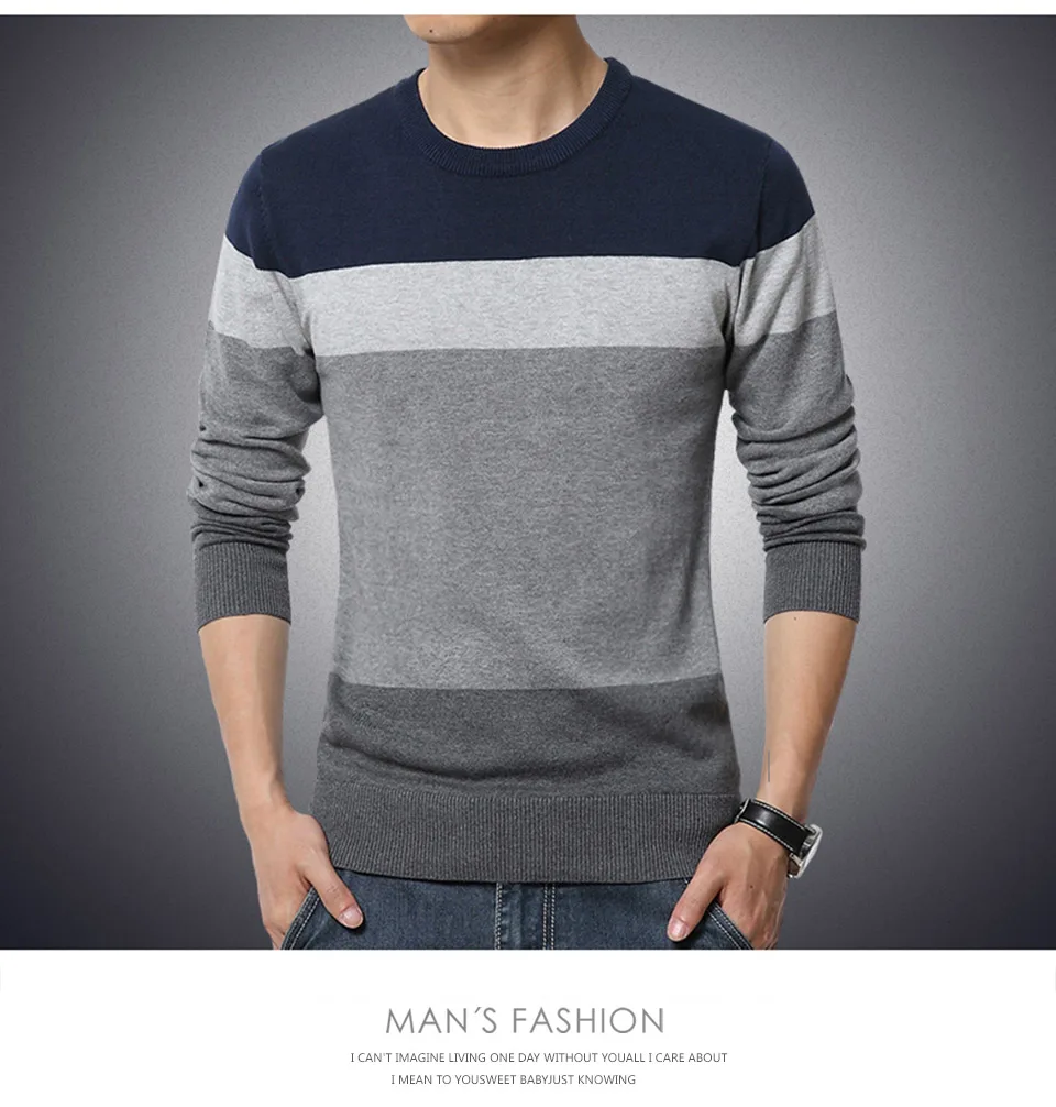 Мужской свитер с круглым вырезом Manoswe, Повседневный пуловер в полоску с длинным рукавом, в стиле пэчворк, Осень-зима
