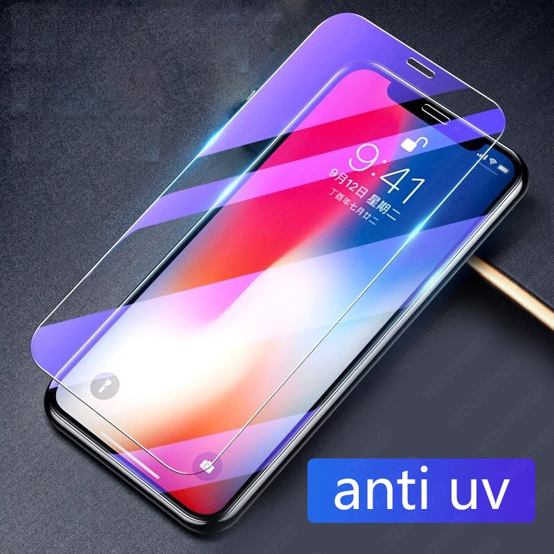 9H анти УФ Фиолетовый Синий свет отпечатков пальцев закаленное стекло для iPhone 11 Pro XS Max XR X 8 7 6 6s Plus Защитная пленка для экрана