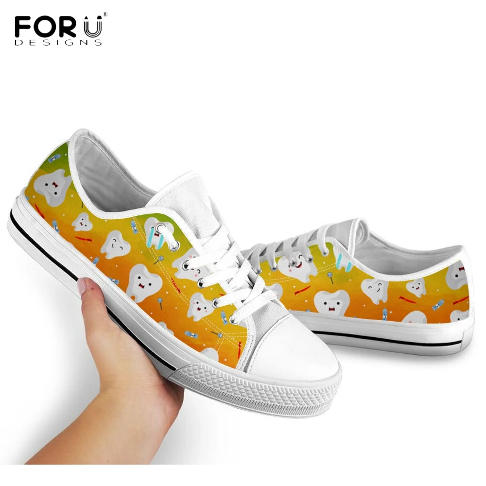 Женские кроссовки FORUDESIGNS с красочным рисунком зубовзубов, новинка 2019, обувь на плоской подошве для женщин, Брезентовая обувь с низким верхом для дантистов