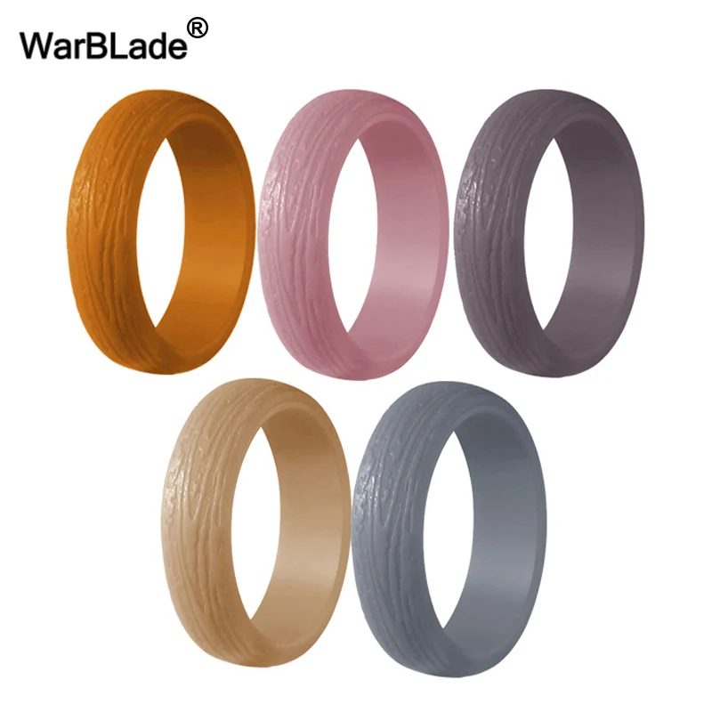 Модные силиконовые кольца 5,7 мм с рисунком дерева для женщин, свадебные резинки, спортивные гипоаллергенные гибкие силиконовые кольца на палец