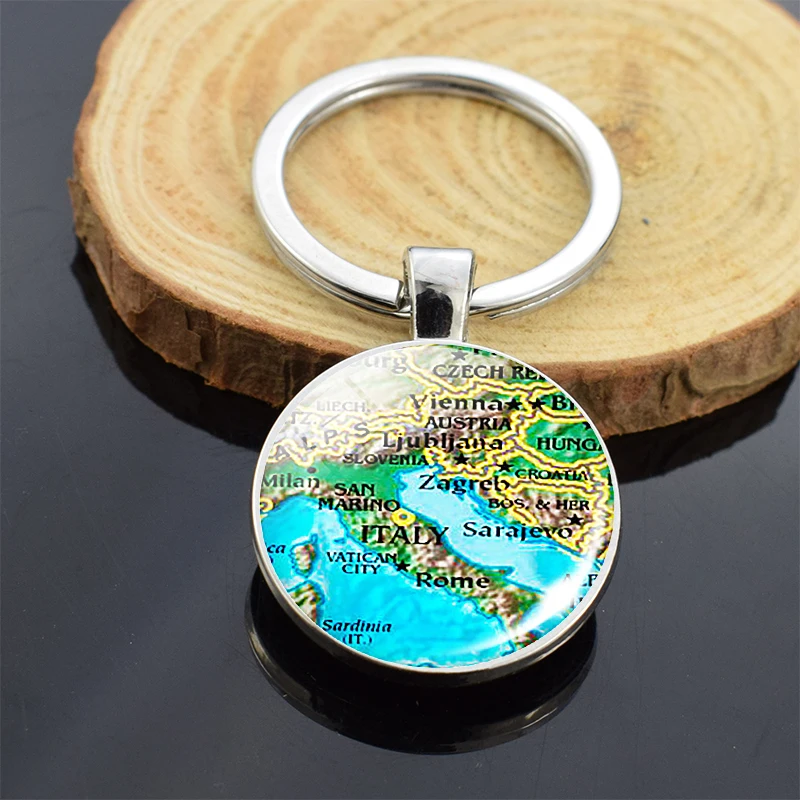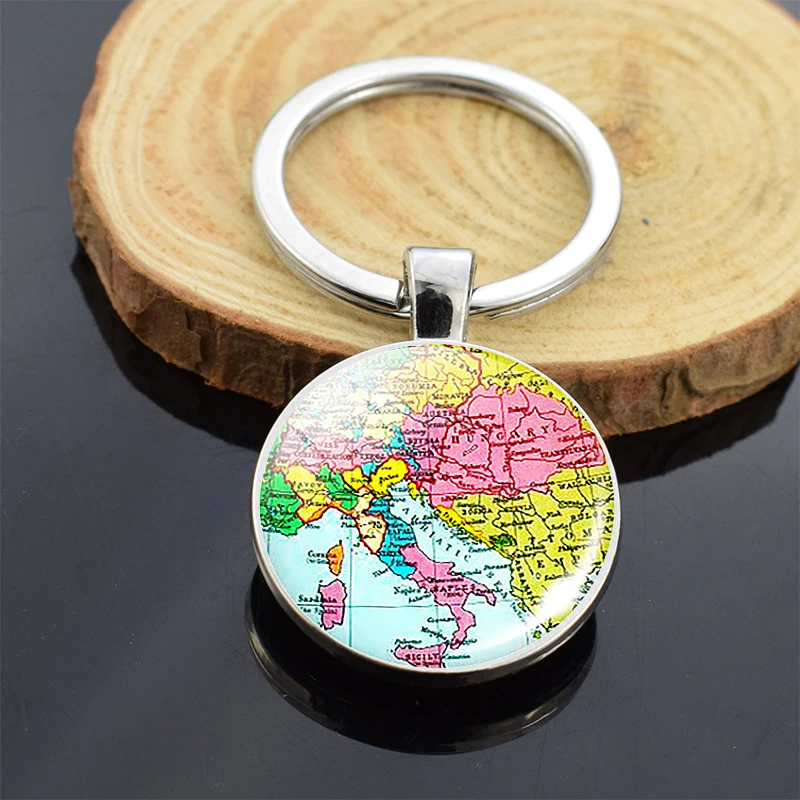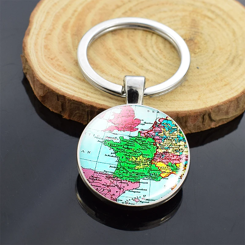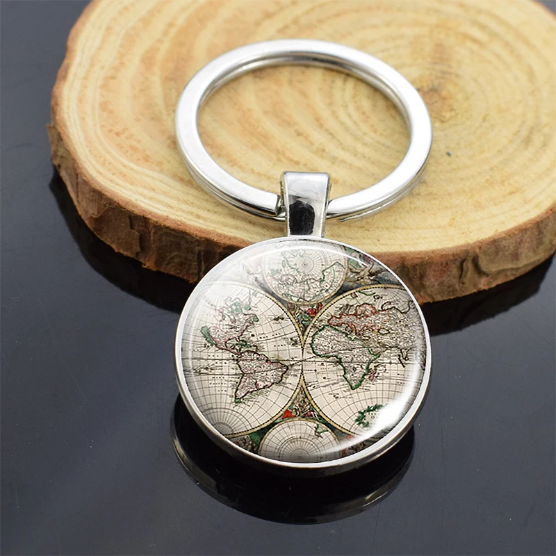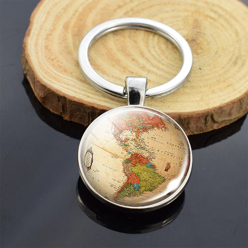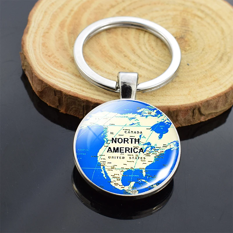 Брелок для ключей с планетами мира, картой земли, брелок для ключей с планетами Америки, Европы, Африки, Азии, со стеклянным шаром, рождественские подарки