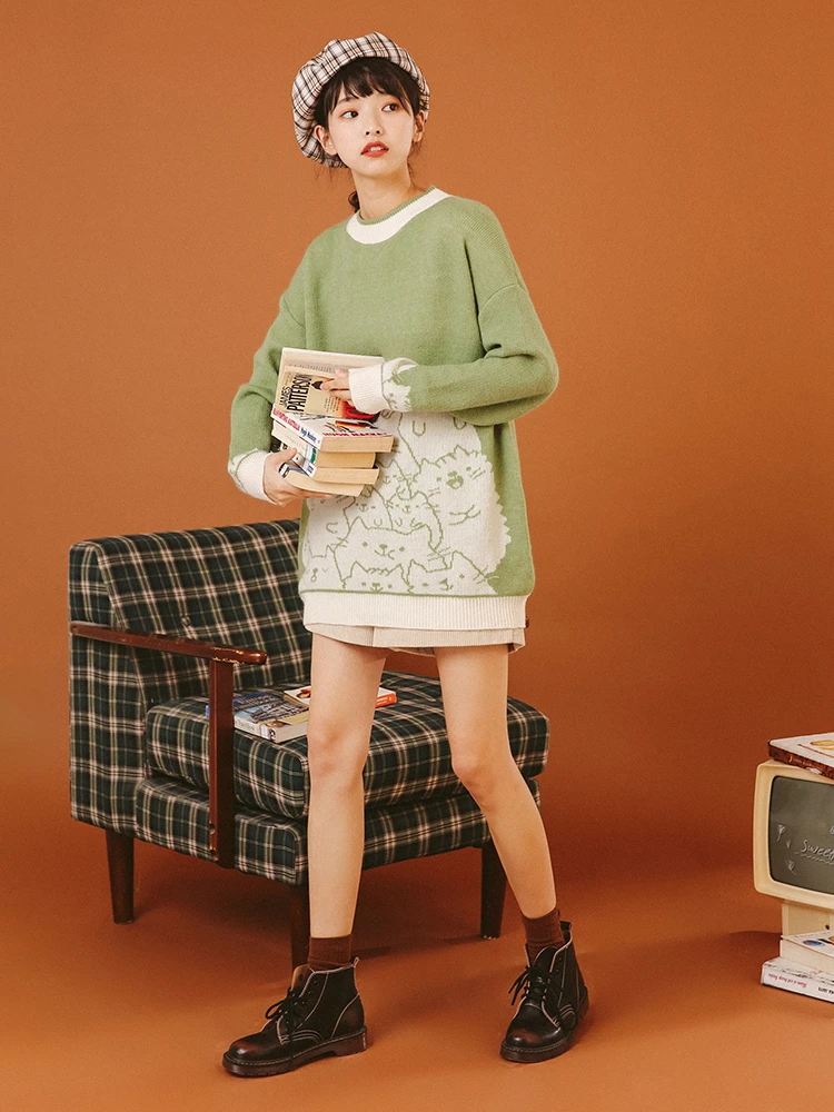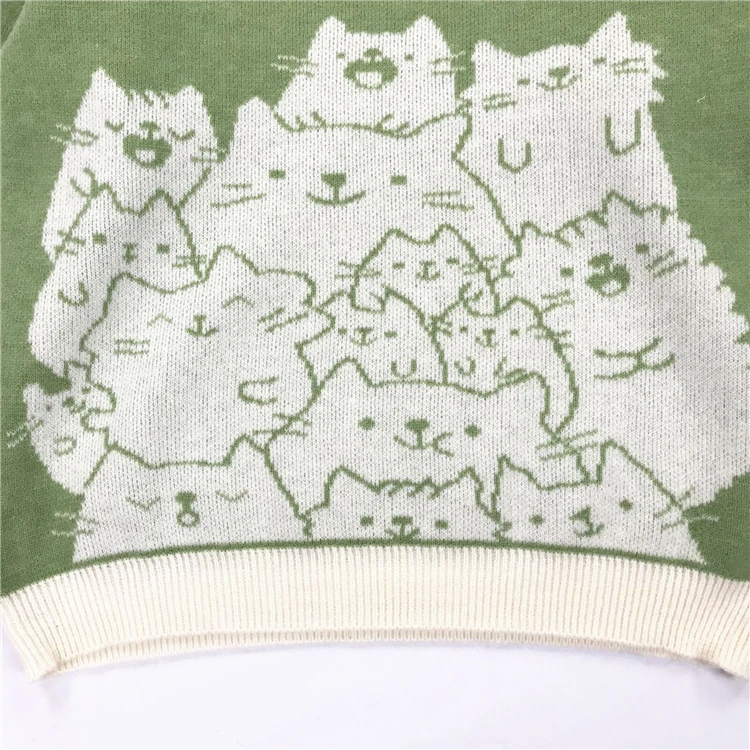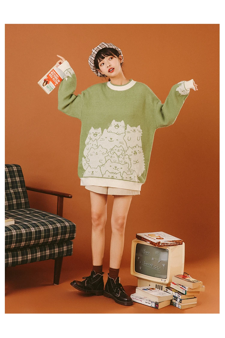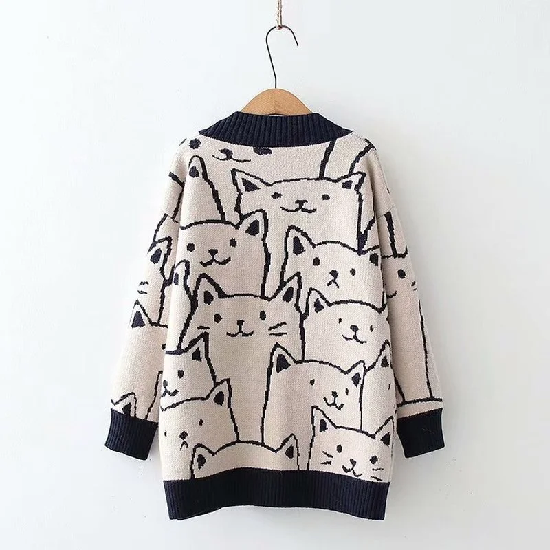 Кардиган вязаный женский, с мультяшным котом, Осень-зима, свитер Харадзюку