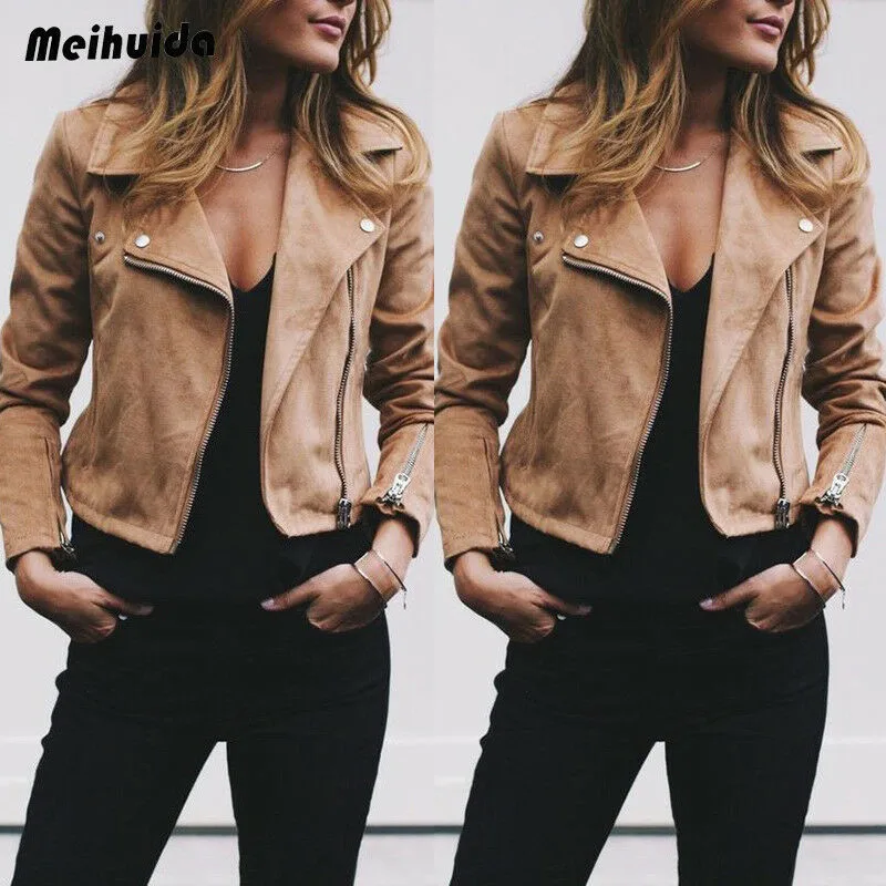 Куртка женская кожаная на молнии, повседневная верхняя одежда в байкерском стиле