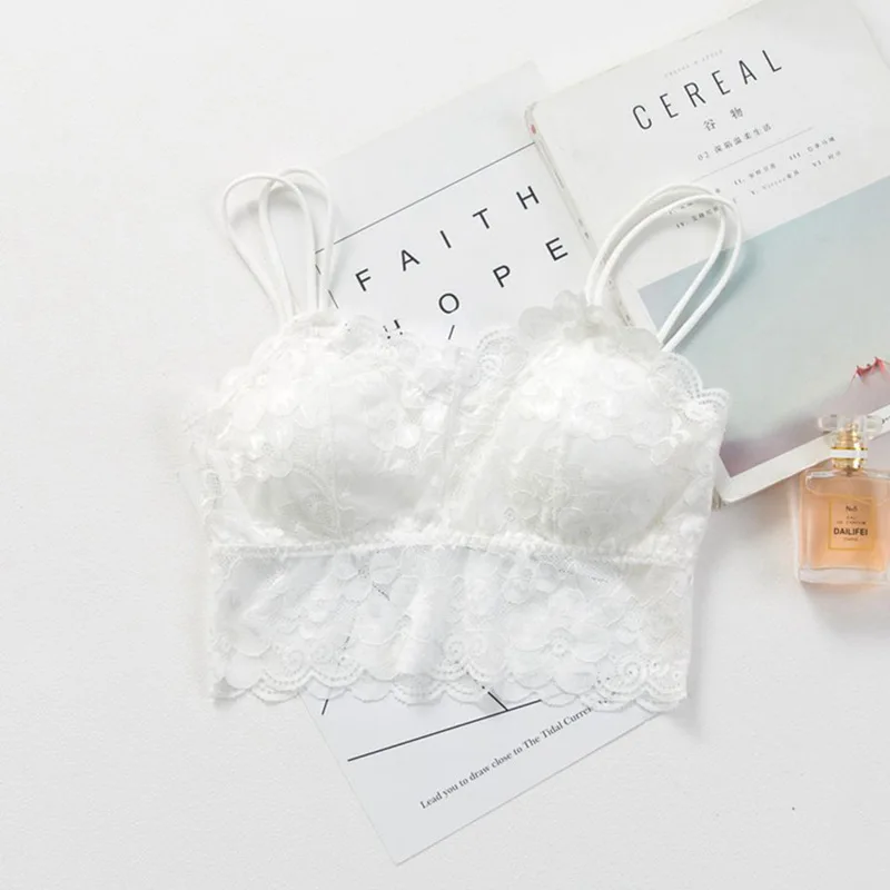 Бюстгальтер женский кружевной, без косточек, с завязками на груди