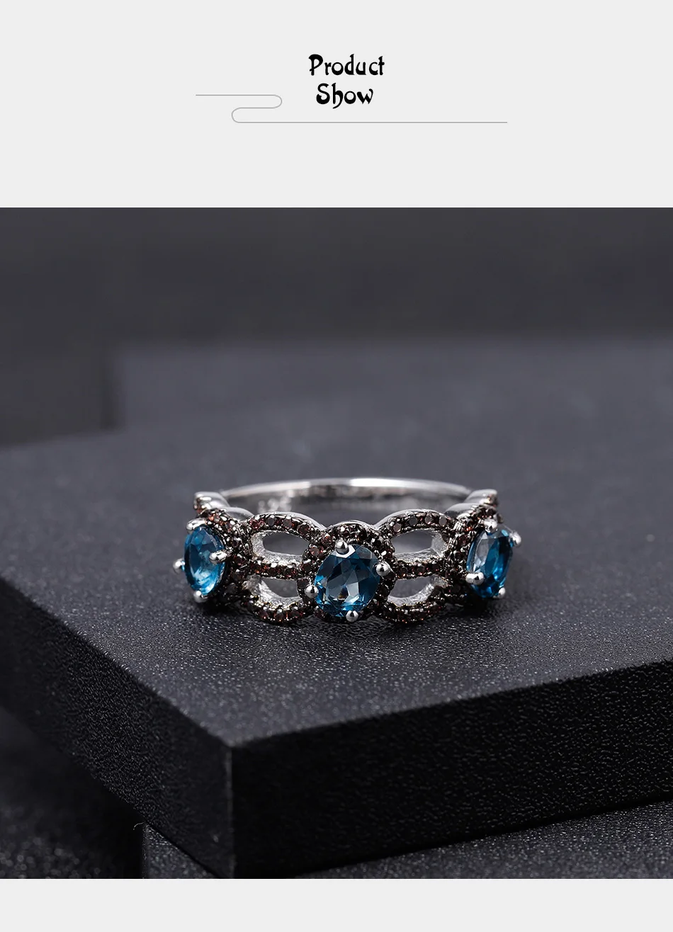 Женское кольцо из серебра 925 пробы, с натуральным голубым топазом ...