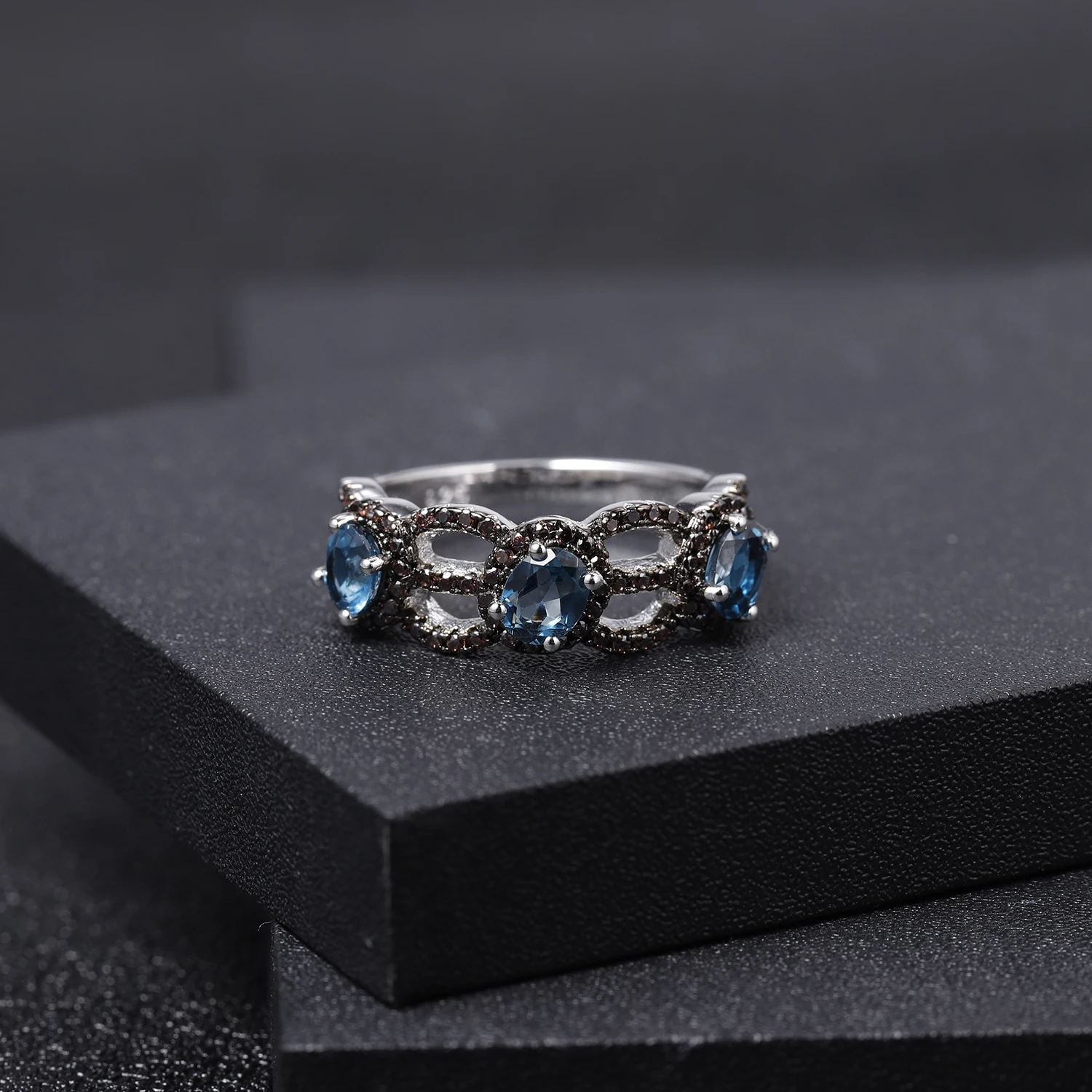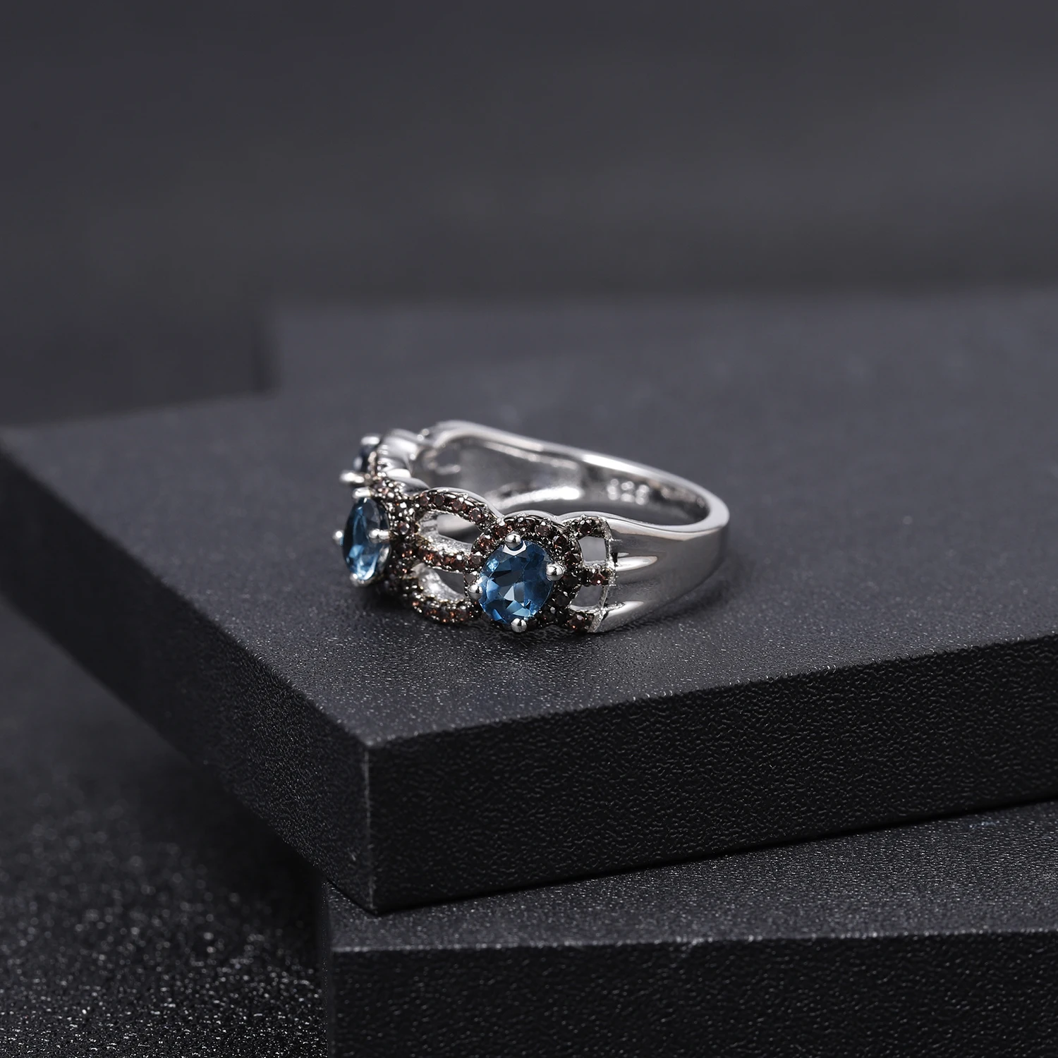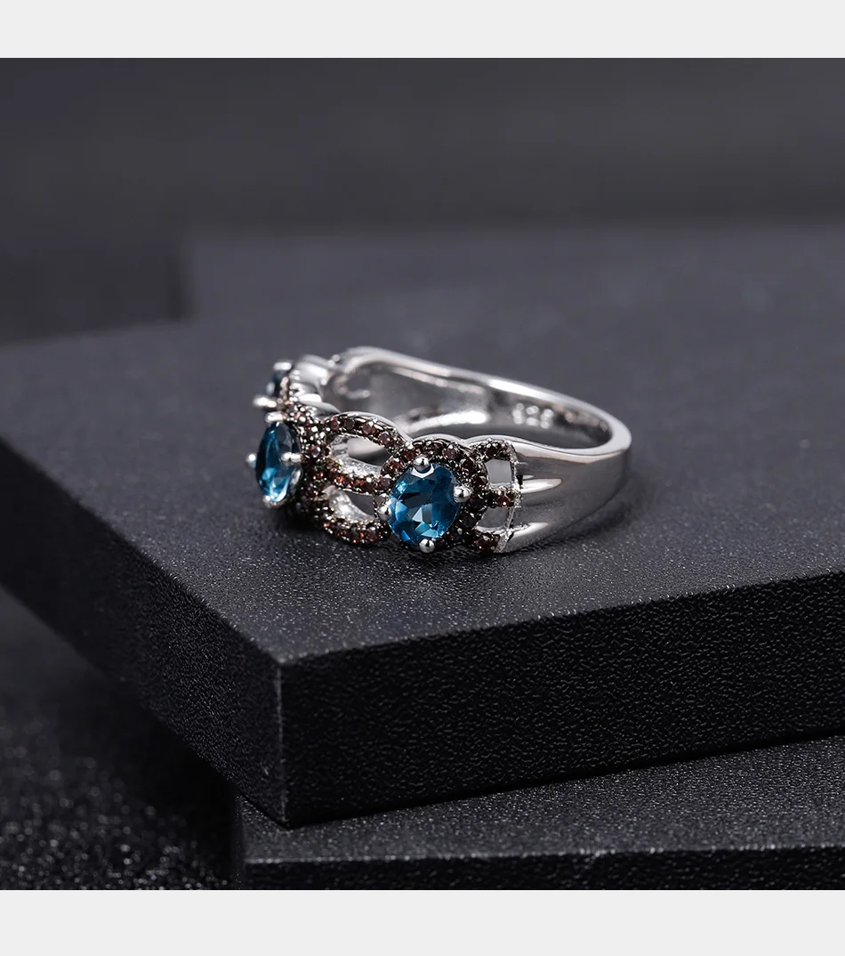 Кольцо женское из серебра 925 пробы с натуральным лондонским голубым топазом 1,23 карата