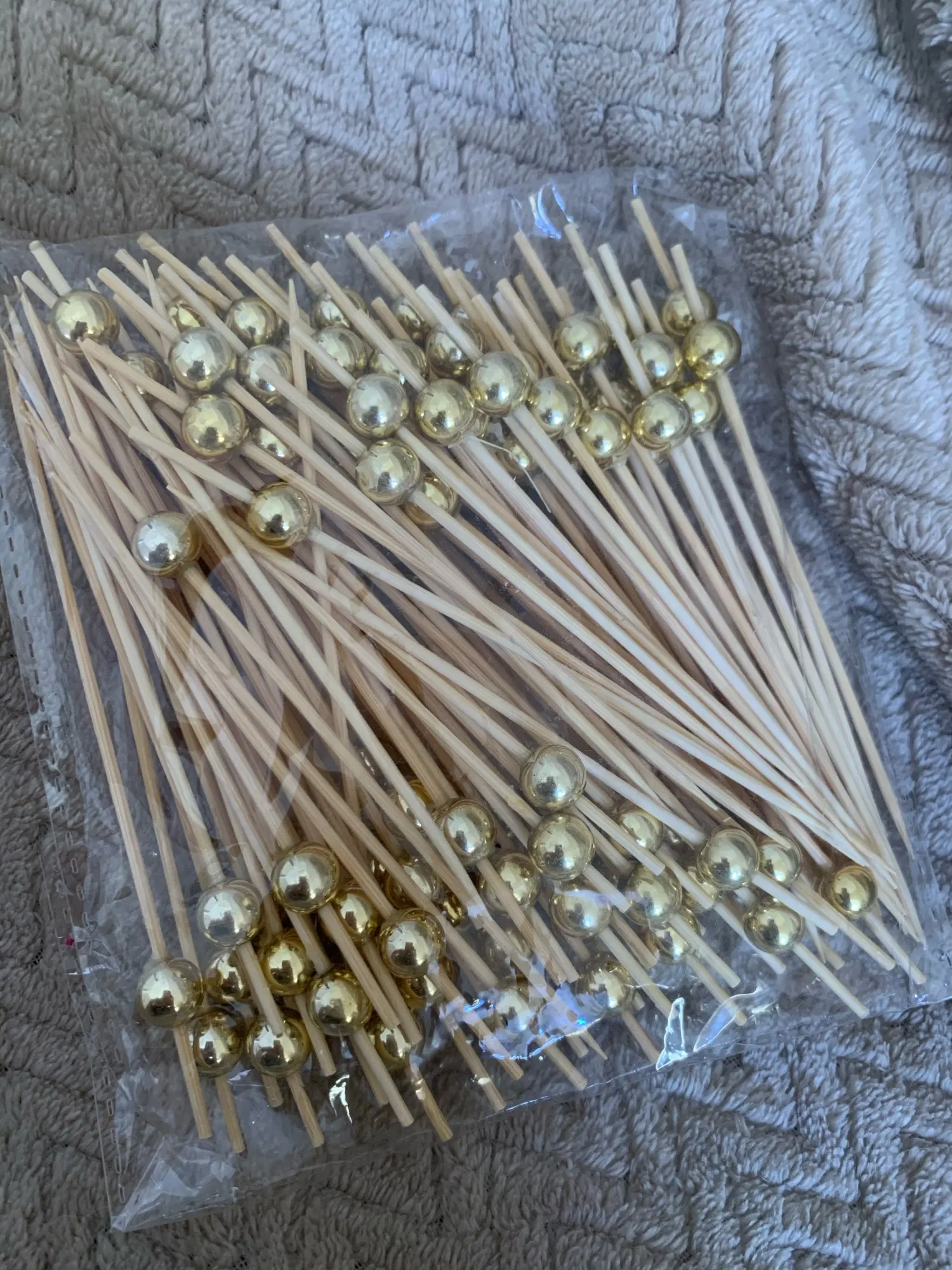 Особенности:100% новый и высокое качествоИдеально подходит для фруктов, десертов, приготовленной пищи и многого другого, подходит для многих случаев, таких как буфет, домашние, вечерние и так далее.Дизайн с имитацией жемчуга, также может быть использован для украшения коктейлей и сэндвичей, натурального бамбукового материала, нетоксичного и не будет легко сломана.