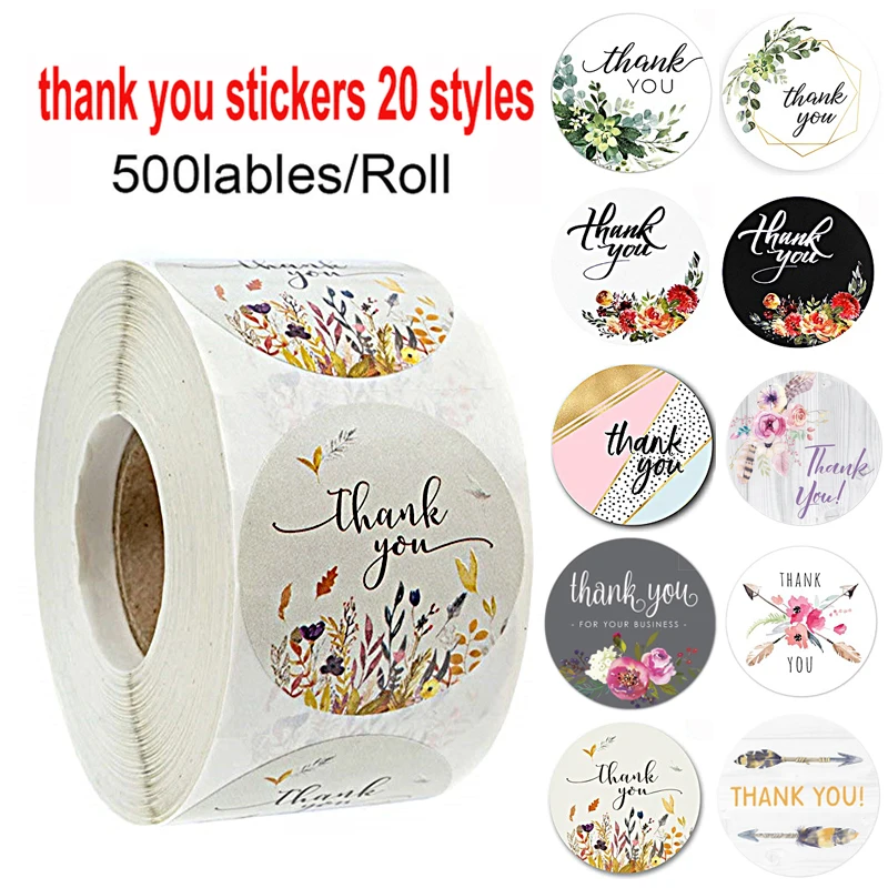 500 шт.рулон 20 видов цветочный Спасибо наклейки для печати этикеток Свадебные украшения подарок на Новый год наклейки для рукоделия вечерние поставки