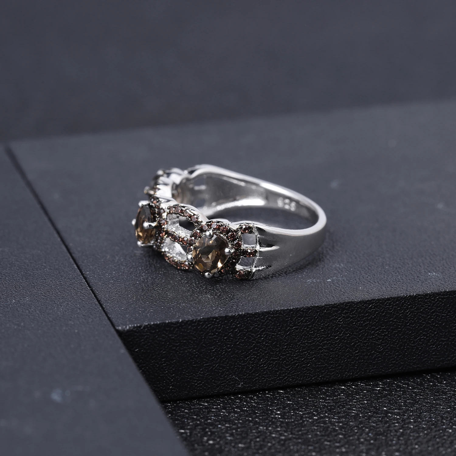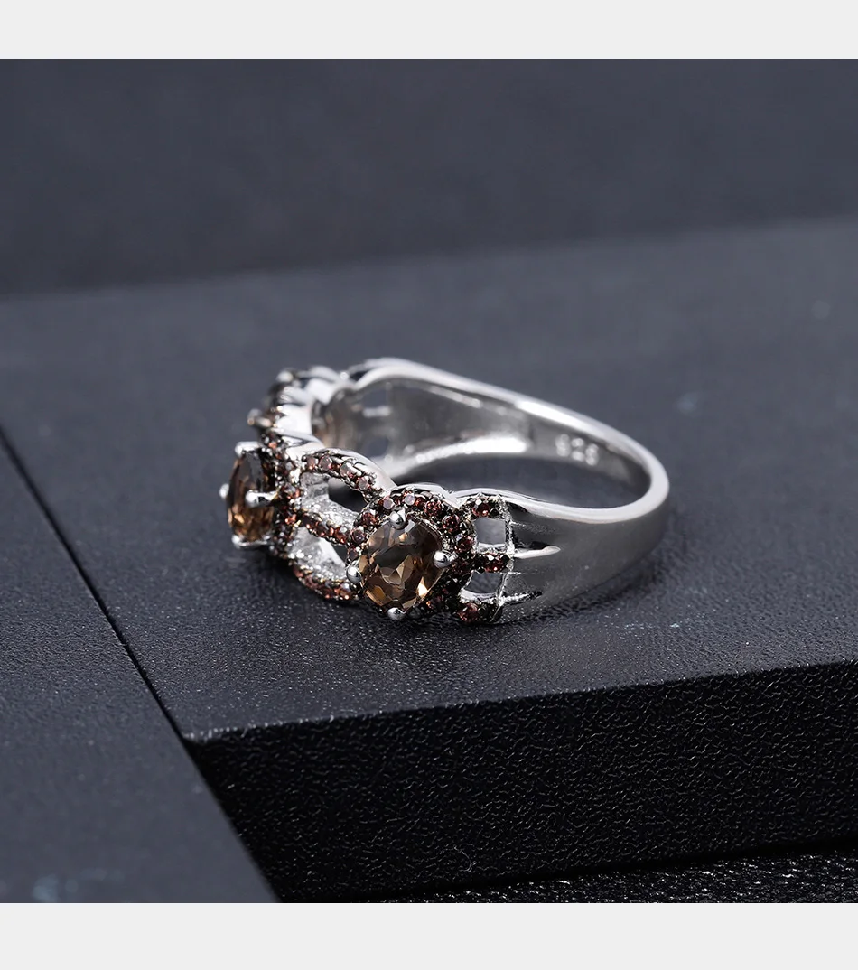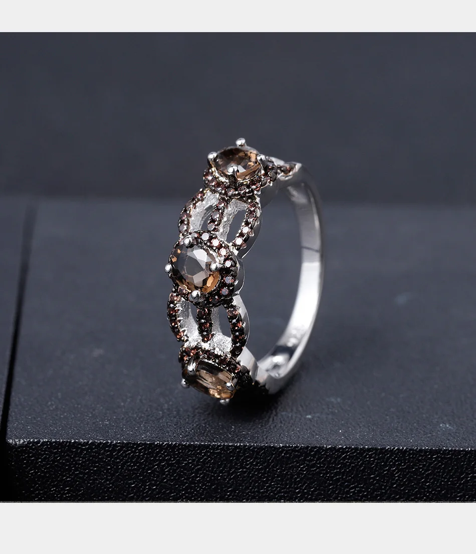 Кольцо женское из серебра 925 пробы, с натуральным дымчатым кварцем...