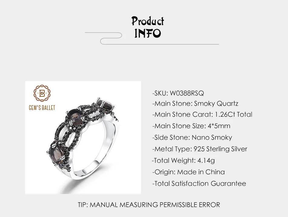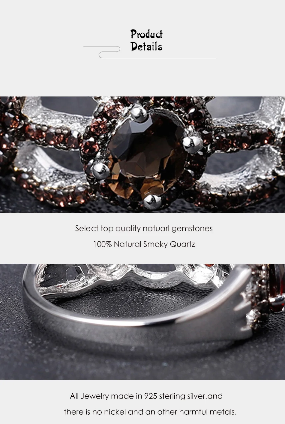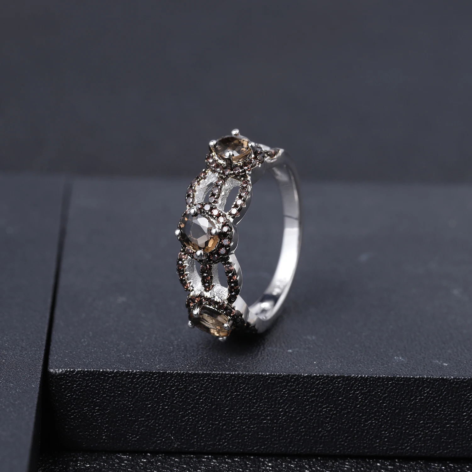 Кольцо женское из серебра 925 пробы, с натуральным дымчатым кварцем...