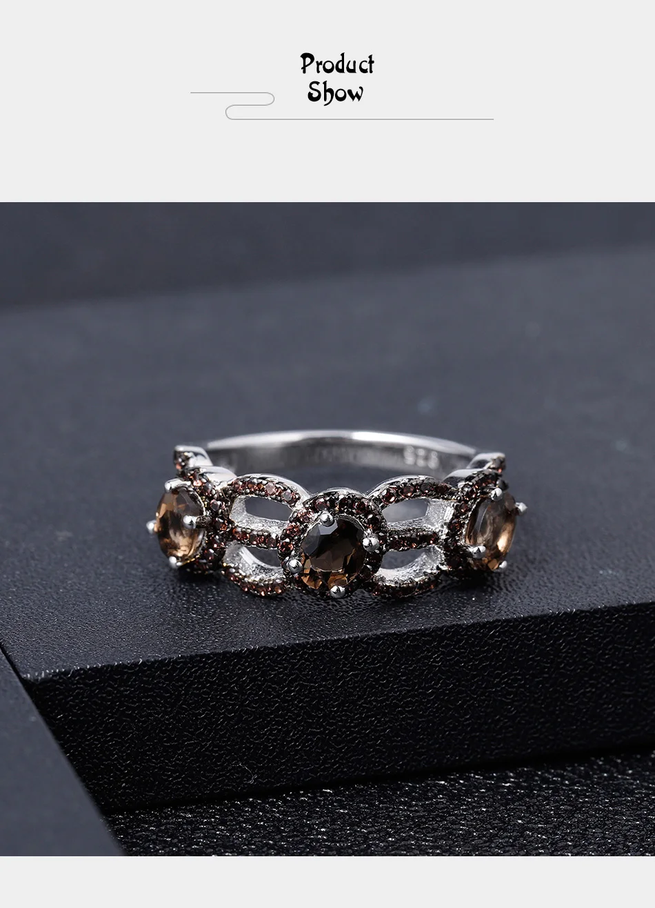 Женское Винтажное кольцо из серебра 925 пробы, с дымчатым кварцем